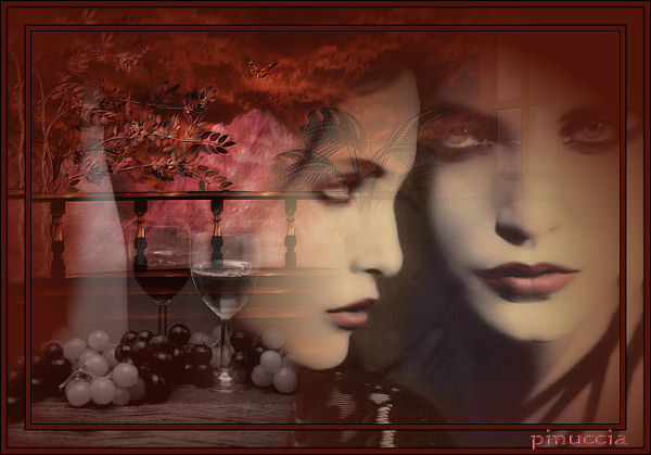 qui puoi trovare qualche risposta ai tuoi dubbi. Se l'argomento che ti interessa non è presente, ti prego di segnalarmelo. Questo tutorial è stato scritto con PSP 9. Occorrente: Filtro FM Tile Tools qui Materiale qui 1. Imposta il colore di primo piano con #b4464a, e il colore di sfondo con #4f1409. 2. Apri una nuova immagine trasparente 600 x 400. 3. Riempi l'immagine con il colore di sfondo.4. Apri il mist redsky e vai a Modifica>Copia. 5. Torna al tuo lavoro e vai a Modifica>Incolla>Incolla come nuovo livello. 6. Posizionalo in alto nell'angolo sinistro.7. Effetti>Plugins>FM Tile Tools / Blend emboss, con i settaggi standard: ![]() 8. Apri il mist Rsfaces e vai a Modifica>Copia. 9. Torna al tuo lavoro e vai a Modifica>Incolla>Incolla come nuovo livello. 10. Posizionalo ![]() 11. Livelli>Nuovo livello raster. 12. Attiva lo strumento selezione a mano libera ![]() punto a punto e seleziona le labbra di entrambi i visi. ![]() 13. Riempi la selezione con il colore di primo piano.14. Selezione>Nessuna selezione. 15. Nella paletta dei livelli cambia la modalità di miscelatura in Colore e abbassa l'opacità al 40%. 16. Se non sei soddisfatto del risultato, cancella o ammorbidisci i bordi, se necessario. 17. Apri il mist Rswine e vai a Modifica>Copia. 18. Torna al tuo lavoro e vai a Modifica>Incolla>Incolla come nuovo livello. 19. Posizionalo in basso nell'angolo sinistro.20. Nella paletta dei livelli abbassa l'opacità al 50%. 21. Livelli>Unisci>Unisci tutto (appiattisci). 22. Immagine>Aggiungi bordatura, 1 pixel, simmetriche, con il colore nero. 23. Immagine>Aggiungi bordatura, 5 pixels, simmetriche, con il colore di sfondo. 24. Immagine>Aggiungi bordatura, 1 pixel, simmetriche, con il colore nero. 25. Fai un duplicato dell'immagine premendo sulla tastiera i tasti Shift+D e mettilo da parte. 26. Sulla tua immagine principale vai a Immagine>Aggiungi bordatura, 25 pixels, simmetriche, con il colore bianco. 27. Seleziona il bordo con la Bacchetta magica ![]() 28. Apri l'immagine che hai duplicato prima e vai a Modifica>Copia. 29. Torna al tuo lavoro e vai a Modifica>Incolla>Incolla nella selezione. 30. Selezione>Nessuna selezione. 31. Immagine>Ridimensiona, a 600 pixels di larghezza. 32. Aggiungi il tuo nome, se vuoi. 33. Salva in formato jpg. ![]() le vostre versioni. Grazie ![]()