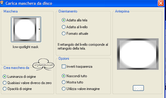 qui puoi trovare qualche risposta ai tuoi dubbi. Se l'argomento che ti interessa non è presente, ti prego di segnalarmelo. Questo tutorial è stato scritto in PSP 9. Occorrente: Filtri: Mehdi Sorting Tile qui Artistic Filters qui Materiale qui Scompatta il materiale, metti la maschera nella cartella maschere, apri il font e minimizzalo nella tua area di lavoro. La foto Highlight Creamroses è disponibile grazie alla cortesia di Morgue Files. 1. Apri una nuova immagine trasparente 800x600 pixels. 2. Selezione>Seleziona tutto. 3. Apri la foto Highlight creamroses e vai a Modifica>Copia. 4. Torna al tuo lavoro e vai a Modifica>Incolla>Incolla nella seleizone. 5. Regola>Sfocatura>Sfocatura gaussiana, raggio 30. ![]() 6. Effetti>Plugins>Mehdi / Sorting Tiles: ![]() 7. Selezione>Nessuna selezione. 8. Apri nuovamente Highlight creamroses. 9. Livelli>Innalza livello di sfondo. 10. Livelli>Carica/Salva maschera>Carica maschera da disco. Cerca e carica la maschera: krw-spotlightmask. ![]() 11. Livelli>Unisci>Unisci gruppo. 12. Modifica>Copia. Torna al tuo lavoro e vai a Modifica>Incolla>Incolla come nuovo livello. 13. Effetti>Effetti 3D>Sfalsa ombra, con i seguenti settaggi, colore nero: ![]() 14.Effetto>Plugins>Artistic / Paint Daubs: ![]() 15. Apri il mist krw-female44 e vai a Modifica>Copia. 16. Torna al tuo lavoro e vai a Modifica>Incolla>Incolla come nuovo livello. 17. Spostalo nell'angolo in basso a destra della maschera delle rose.18. Apri il mist krw-male8 e vai a Modifica>Copia. 19. Torna al tuo lavoro e vai a Modifica>Incolla>incolla come nuovo livello. 20. Immagine>Ridimensiona, dell'85%, tutti i livelli non selezionato. ![]() 21. Spostalo nell'angolo in basso a sinistra.23. Attiva lo strumento Testo , crea come vettore,font Saliere, dimensione 24, pennellata 0, allineato a sinistra. ![]() 24. Scrivi il seguente testo: "Footfalls echo in the memory down the passage which we did not take towards the door we never opened into the rose-garden". 25. Sposta il testo nell'angolo in alto a sinistra. 26. Livelli>Converti in livello raster. 27. Effetti>Effetti 3D>Sfalsa ombra, con i seguenti settaggi, colore nero: ![]() 28. Livelli>Unisci>Unisci tutto (appiattisci). 29. Immagine>Aggiungi bordatura, 2 pixels, simmetriche, con il colore di sfondo. 30. Immagine>Aggiungi bordatura, 15 pixels, simmetriche, con il colore #494d28. 31. Aggiungi la tua firma e salva in formato jpg.