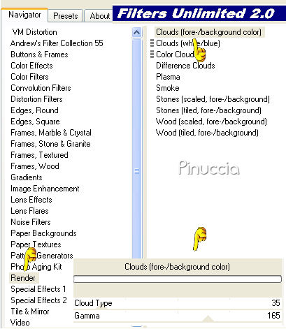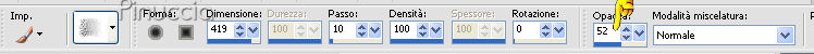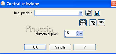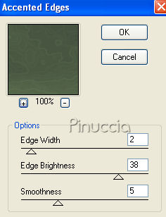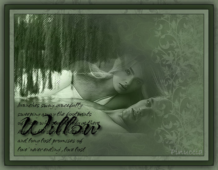 qui puoi trovare qualche risposta ai tuoi dubbi. Se l'argomento che ti interessa non è presente, ti prego di segnalarmelo. Questo tutorial è stato creato in PSP 9. Occorrente: Materiale qui Importa il pennello in PSP. Come fare vedi qui Filtri: Filters Unlimited 2.0 qui Brush Strokes qui la scheda relativa a questo filtro è stata aggiunta oggi alla pagina dei filtri 1. Apri una nuova immagine trasparente 640 x 480 pixels. 2. Imposta il colore di primo piano con #30372e, e il colore di sfondo con #4e6041. 3. Riempi l'immagine trasparente con il colore di sfondo #4e6041.ricorda che per riempire con il colore di sfondo devi cliccare con il tasto destro del mouse. 4. Effetti>Plugins>Filters Unlimited 2 - Render - Cloud (fore-background): 35.165. ![]() 5. Effetti>Plugins>Brush Strokes - Accented edges: 2,38,5. ![]() 6. Apri il tube krw-landscape50 mist, e vai a Modifica>Copia. 7. Torna al tuo lavoro e vai a Modifica>Incolla>Incolla come nuovo livello. 8. Sposta il tube nell'angolo in alto a sinistra.![]() 9. Cambia la modalità di miscelatura di questo livello in Luminanza (esistente). 10. Apri il tube krw-art brush, e vai a Modifica>Copia. 11. Torna al tuo lavoro e vai a Modifica>Incolla>Incolla come nuovo livello. 12. Spostalo contro il bordo destro dell'immagine.13. Cambia la modalità di miscelatura di questo livello in Filtra. 14. Apri il tube krw-couple22 e vai a Modifica>Copia. 15. Torna al tuo lavoro e vai a Modifica>Incolla>Incolla come nuovo livello. 16. Cambia la modalità di miscelatura di questo livello in Luminanza (Esistente), e abbassa l'opacità al 62%. 17. Immagine>Rifletti. ![]() 18. Apri il tube krw-willowText e vai a Modifica>Copia. 29. Torna al tuo lavoro e vai a Modifica>Incolla>Incolla come nuovo livello. 20. Sposta il testo nell'angolo in basso a sinistra.21.Livelli>Unisci>Unisci tutto (appiattisci). 22.Immagine>Aggiungi bordatura, 1 pixel, simmetriche, con il colore nero. 23.Immagine>Aggiungi bordatura, 15 pixels, simmetriche, con il colore #7b8a72. 24. Seleziona il bordo con la bacchetta magica ![]() ![]() 25. Attiva lo strumento Pennello con i seguenti settaggi: ![]() 26. Applica il pennello tutto intorno al bordo selezionato. 27. Modifica>Copia. Modifica>Incolla>Incolla come nuova immagine. Questo è il tuo bordo duplicato. ![]() 28. Minimizza per il momento questo bordo. 29. Immagine>Aggiungi bordatura, 1 pixel, simmetriche, con il colore nero. 30. Immagine>Aggiungi bordatura, 15 pixels, simmetriche, con il colore #33432a. 31. Immagine>Aggiungi bordatura, 1 pixel, simmetriche, con il colore nero. 32. Immagine>Aggiungi bordatura, 15 pixels, simmetriche, con il colore #7b8a72. 33. Seleziona quest'ultimo bordo con la bacchetta magica ![]() ![]() 34. Attiva il livello duplicato che hai minimizzato al punto 27. 35. Modifica>Copia. Torna al tuo lavoro e vai a Modifica>Incolla>Incolla nella selezione. 36. Immagine>Rifletti. 37. Selezione>inverti. 38. Effetti>Effetti 3D>Sfalsa ombra, con i seguenti settaggi,colore nero. ![]() 39. Selezione>modifica>Contrai, di 16 pixels. ![]() 40. Effetti>Effetti 3D>Sfalsa ombra, con i settaggi precedenti. 41. Selezione>modifica>Contrai, di 16 pixels. 42. Effetti>Effetti 3D>Sfalsa ombra, con i settaggi precedenti. 43. Selezione>Nessuna selezione. 44. Aggiungi la tua firma, se vuoi. 45. Livelli>Unisci>Unisci tutto (appiattisci) e salva in formato jpg. ![]() Se hai problemi o dubbi, o trovi un link non funzionante, o anche soltanto per un saluto, scrivimi. 12 Ottobre 2007 |