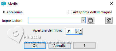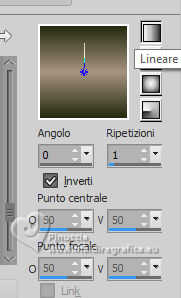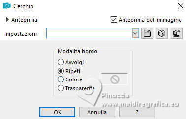 qui puoi trovare qualche risposta ai tuoi dubbi. Se l'argomento che ti interessa non è presente, ti prego di segnalarmelo. Questo tutorial è stato creato e tradotto con PSP2020, ma può essere eseguito anche con le altre versioni di PSP. Dalla versione X4, il comando Immagine>Rifletti è stato sostituito con Immagine>Capovolgi in orizzontale, e il comando Immagine>Capovolgi con Immagine>Capovolgi in verticale. Nelle versioni X5 e X6, le funzioni sono state migliorate rendendo disponibile il menu Oggetti. Con la nuova versione X7, sono tornati Rifletti>Capovolgi, ma con nuove varianti. Vedi la scheda sull'argomento qui traduzione in francese/traduction en français qui/ici Versioni/Versions quiOccorrente: Un tube a scelta. Il resto del materiale ![]() Grazie per il tube del paesaggio Annytubes e per la maschera Estela Fonseca. Per il tube usato e non fornito grazie Franie Margot. (in questa pagina trovi i links ai siti dei creatori di tubes) ![]() se hai problemi con i filtri, consulta la mia sezione filtri qui Filters Unlimited 2.0 qui L&K's - L&K's Trix qui L&K's - L&K's Palmyre qui L&K's - L&K's Antonio qui Mura's Meister - Perspective Tiling qui AAA Filters - Custom qui ![]() non esitare a cambiare modalità di miscelatura e opacità secondo i colori utilizzati. Nelle ultime versioni di PSP non c'è il gradiente di primo piano/sfondo (Corel_06_029) Puoi usare i gradienti delle versioni precedenti. Trovi qui i gradienti Corel X. ![]() Metti il preset nella cartella Impostazioni predefinite. Apri la maschera in PSP e minimizzala con il resto del materiale. 1. Apri una nuova immagine trasparente 900 x 600 pixels. Imposta il colore di primo piano con #242b10, e il colore di sfondo con #a79380. ![]() Passa il colore di primo piano a Gradiente di primo piano/sfondo, stile Lineare ![]() Riempi l'immagine trasparente con il gradiente.2. Selezione>Seleziona tutto. Apri il misted Annytubes_paisaje 1222_30_11_20116 ![]() Modifica>Copia. Torna al tuo lavoro e vai a Modifica>Incolla nella selezione. Selezione>Deseleziona. 3. Regola>Sfocatura>Media ![]() 4. Livelli>Duplica. 5. L&K's - L&K's Antonio, con i settaggi standard. ![]() 6. Effetti>Effetti di riflesso>Specchio rotante. ![]() 7. Effetti>Effetti geometrici>Cerchio. ![]() 8. Effetti>Effetti di bordo>Aumenta. 9. Livelli>Nuovo livello raster. Passa il colore di primo piano a Colore. Riempi il livello con il colore scuro di primo piano #242b10.10. Livelli>Nuovo livello maschera>Da immagine. Apri il menu sotto la finestra di origine e vedrai la lista dei files aperti. Seleziona la maschera EF_Mask_25 ![]() Livelli>Unisci>Unisci gruppo. 11. Effetti>Effetti di bordo>Aumenta di più. 12. Effetti>Effetti 3D>Sfalsa ombra, colore nero #000000. ![]() 13. Attiva il livello inferiore, Raster 1. Effetti>Plugins>L&K's - L&K's Trix ![]() 14. Effetti>Plugins>Mura's Meister - Perspective Tiling. ![]() 15. Livelli>Disponi>Porta in alto. 16. Regola>Messa a fuoco>Metti a fuoco. 17. Effetti>Effetti 3D>Sfalsa ombra, colore scuro di primo piano #242b10. ![]() 18. Cambia la modalità di miscelatura di questo livello in Sovrapponi. ![]() 19. Immagine>Aggiungi bordatura, 2 pixels, simmetriche, colore scuro. 20. Selezione>Seleziona tutto. Immagine>Aggiungi bordatura, 50 pixels, simmetriche, colore #ffffff. Selezione>Inverti. 21. Riporta il colore di primo piano a Gradiente. Riempi la selezione con il gradiente.22. Effetti>Plugins>L&K's - L&K's Palmyre, con i settaggi standard. ![]() 23. Effetti>Filtro definito dall'utente - seleziona il preset Emboss 3 e ok. ![]() 24. Selezione>Inverti. Effetti>Effetti 3D>Sfalsa ombra, colore nero. ![]() Selezione>Deseleziona. 25. Apri il deco deco_edith ![]() Modifica>Copia. Torna al tuo lavoro e vai a Modifica>Incolla come nuovo livello. Colorizza se necessario. 26. Apri il tube principale e vai a Modifica>Copia. Torna al tuo lavoro e vai a Modifica>Incolla come nuovo livello. Spostalo a sinistra, o dove preferisci.Effetti>Effetti 3D>Sfalsa ombra, a scelta. Regola>Messa a fuoco>Metti a fuoco. 27. Immagine>Aggiungi bordatura, 3 pixels, simmetriche, colore scuro #242b10. 28. Livelli>Unisci>Unisci tutto. Immagine>Ridimensiona, 950 pixels di larghezza, tutti i livelli selezionato. 29. Effetti>Plugins>AAA Filters - Custom - preset Laplace. ![]() 30. Firma il tuo lavoro e salva in formato jpg. Per i tubes di questo esempio grazie Beatriz e Franie Margot ![]() ![]() Puoi scrivermi se hai problemi o dubbi, o trovi un link che non funziona, o soltanto per un saluto. |