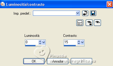 qui puoi trovare qualche risposta ai tuoi dubbi. Se l'argomento che ti interessa non è presente, ti prego di segnalarmelo. Questo tutorial è stato creato con PSP2020 e tradotto con CorelX7, ma può essere eseguito anche con le altre versioni di PSP. Dalla versione X4, il comando Immagine>Rifletti è stato sostituito con Immagine>Capovolgi in orizzontale, e il comando Immagine>Capovolgi con Immagine>Capovolgi in verticale. Nelle versioni X5 e X6, le funzioni sono state migliorate rendendo disponibile il menu Oggetti. Con la nuova versione X7, sono tornati Rifletti>Capovolgi, ma con nuove varianti. Vedi la scheda sull'argomento qui traduzione in francese/traduction en français qui/ici Versioni/Versions quiOccorrente: ![]() Per il tube grazie CibiBijoux. Il secondo tube è a scelta. Per il tube della mia versione grazie Beatriz. (in questa pagina trovi i links ai siti dei creatori di tubes) ![]() se hai problemi con i filtri, consulta la mia sezione filtri qui Filters Unlimited 2.0 qui Unplugged Tools - Interlace qui FM Tile Tools - Saturation Emboss qui Balder Olrik - Select Sharp qui I filtri Unplugged Tools e Balder Olrik si possono usare da soli o importati in Filters Unlimited (come fare vedi qui) Se un filtro fornito appare con questa icona ![]() non esitare a cambiare modalità di miscelatura e opacità secondo i colori utilizzati. Nelle ultime versioni di PSP non c'è il gradiente di primo piano/sfondo (Corel_06_029) Puoi usare i gradienti delle versioni precedenti. Trovi qui i gradienti Corel X. ![]() Metti la selezione nella cartella Selezioni. 1. Apri una nuova immagine trasparente 900 x 650 pixels. 2. Selezione>Seleziona tutto. Apri il tube Beauty_red_lips_CibiBijoux ![]() Modifica>Copia. Torna al tuo lavoro e vai a Modifica>Incolla nella selezione. Selezione>Deseleziona. 3. Effetti>Effetti di immagine>Motivo unico, con i settaggi standard. ![]() 4. Livelli>Unisci>Unisci tutto. Livelli>Innalza livello di sfondo. 5. Regola>Sfocatura>Sfocatura gaussiana - raggio 30. ![]() 6. Livelli>Duplica. Chiudi questo livello. 7. Attiva il livello Raster 1. Effetti>Plugins>Unplugged Tools - Interlace. ![]() 8. Regola>Luminosità e contrasto>Luminosità e contrasto. ![]() 9. Riapri e attiva il livello Copia di Raster 1. Effetti>Plugins>Filters Unlimited 2.0 - Unplugged Tools - CopyStar. ![]() 10. Selezione>Carica/Salva selezione>Carica selezione da disco. Cerca e carica la selezione Interlace_edith ![]() Premi sulla tastiera il tasto CANC ![]() Selezione>Deseleziona. 11. Oggetti>Allinea>Sinistra o sposta l'immagine a sinistra,o attiva lo strumento Puntatore e imposta Posizione X 0,00.![]() ![]() 12. Effetti>Effetti 3D>Sfalsa ombra. ![]() 13. Effetti>Plugins>Filters Unlimited 2.0 - Balder Olrik - Select Sharp, con i settaggi standard. ![]() 14. Livelli>Duplica. Livelli>Unisci>Unisci giù. 15. Livelli>Duplica. Immagine>Rifletti. Livelli>Unisci>Unisci giù. 16. Effetti>Plugins>FM Tile Tools - Saturation Emboss, par défaut. ![]() 17. Modifica>Incolla come nuovo livello (il tube della donna è sempre in memoria). Sposta il tube a sinistra.Livelli>Duplica. Regola>Sfocatura>Sfocatura gaussiana - raggio 15. ![]() 18. Livelli>Disponi>Sposta giù. Attiva il livello superiore, Raster 2. Livelli>Unisci>Unisci giù. 19. Apri il tuo secondo tube, il mio 2804-Thor-LB TUBES ![]() Modifica>Copia. Torna al tuo lavoro e vai a Modifica>Incolla come nuovo livello. Spostalo a destra.Abbassa l'opacità al 30%. ![]() 20. Apri Texto love ![]() Modifica>Copia. Torna al tuo lavoro e vai a Modifica>Incolla come nuovo livello. Spostalo a destra, o come preferisci.![]() 21. Apri Deco_edith ![]() Modifica>Copia. Torna al tuo lavoro e vai a Modifica>Incolla come nuovo livello. Non spostarlo. E' al suo posto. Colorizza, se necessario, secondo i tuoi colori. 22. Imposta il colore di primo piano con il colore #000000, e il colore di sfondo con #808080. ![]() Passa il colore di primo piano a Gradiente di primo piano/sfondo, stile Lineare. ![]() 23. Immagine>Aggiungi bordatura, 2 pixel, simmetriche, colore #000000. Immagine>Aggiungi bordatura, 20 pixels, simmetriche, colore #ffffff. 24. Attiva lo strumento Bacchetta magica ![]() e clicca nel bordo bianco per selezionarlo. Riempi la selezione con il gradiente.25. Effetti>Plugins>Filters Unlimited 2.0 - Unplugged Tools - Interlace. ![]() 26. Effetti>Effetti 3D>Sfalsa ombra. ![]() Selezione>Deseleziona. 27. Apri Deco_tagstars ![]() Modifica>Copia. Torna al tuo lavoro e vai a Modifica>Incolla come nuovo livello. Immagine>Rifletti. Sposta il tube in alto al centro.Regola>Messa a fuoco>Metti a fuoco. 28. Immagine>Aggiungi bordatura, 2 pixels, simmetriche, colore #000000. 29. Regola>Messa a fuoco>Maschera di contrasto. ![]() 30. Firma il tuo lavoro e salva in formato jpg. Per i tubes di questo esempio grazie Edith Spigai e Beatriz ![]() ![]() Puoi scrivermi se hai problemi o dubbi, o trovi un link che non funziona, o soltanto per un saluto. |