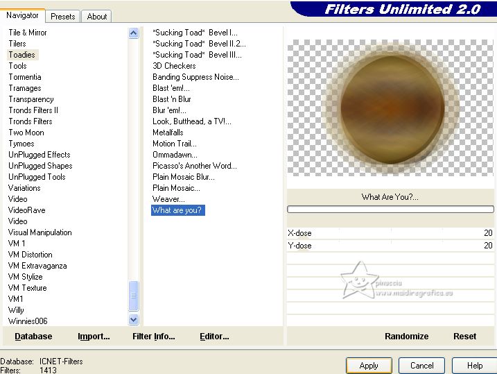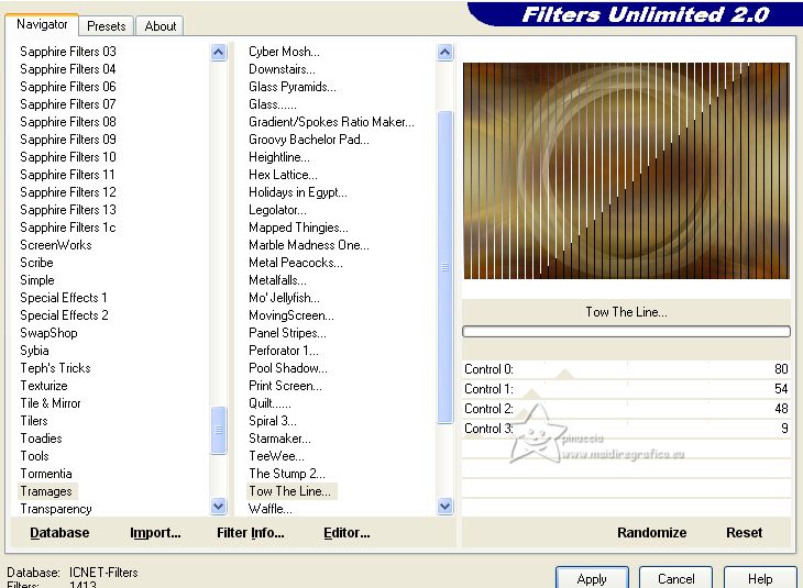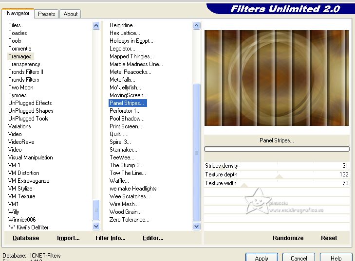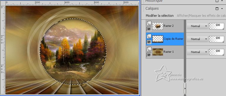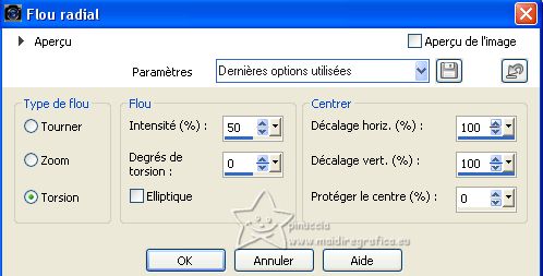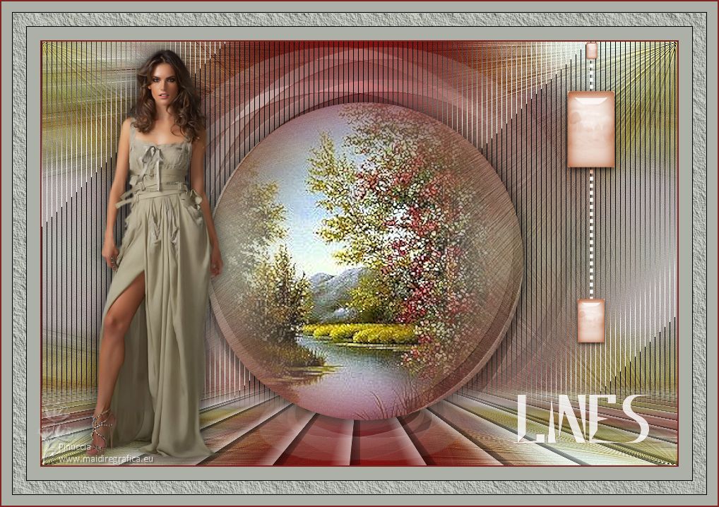 Pour traduire ce tutoriel, créé avec PSP2020, j'ai utilisé PSPX7, mais il peut également être exécuté avec les autres versions. Suivant la version utilisée, vous pouvez obtenir des résultats différents. Depuis la version X4, la fonction Image>Miroir a été remplacée par Image>Renverser horizontalement, et Image>Renverser avec Image>Renverser verticalement . Dans les versions X5 et X6, les fonctions ont été améliorées par la mise à disposition du menu Objets. Avec la nouvelle version X7, nous avons encore Image>Miroir et Image>Renverser/Retourner, mais avec nouvelles différences. Voir les détails à ce sujet ici Certaines dénominations ont changées entre les versions de PSP. Les plus frequentes dénominations utilisées: ![]() traduction italienne ici Vos versions iciNécessaire pour réaliser ce tutoriel: Matériel ici Pour le déco merci NaiseM. Le reste du matériel est de Edith. (ici les liens vers les sites des créateurs de tubes) Modules Externes: consulter, si nécessaire, ma section des filtres ici Filters Unlimited 2.0 ici Graphics Plus - Emboss ici Toadies - What are you ici Tramages - Panel Stripes, Tow the line ici AAA Frames - Texture Frame ici Mura's Meister - Perspective Tiling ici Filtres Graphics Plus, Toadies et Tramages peuvent être utilisés seuls ou importés dans Filters Unlimited. voir comment le faire ici). Si un filtre est fourni avec cette icône, ![]() en fonction des couleurs utilisées, vous pouvez changer le mode mélange et l'opacité des calques. Dans les plus récentes versions de PSP, vous ne trouvez pas le dégradé d'avant plan/arrière plan ou Corel_06_029. Vous pouvez utiliser le dégradé des versions antérieures. Ici le dossier Dégradés de CorelX. ![]() Placer la sélection dans le dossier Sélections. 1. Ouvrir une nouvelle image transparente 900 x 600 pixels. Placer en avant plan la couleur #57471d, et en arrière plan la couleur #c2b990. ![]() Préparer en avant plan un dégradé de premier plan/arrière plan, style Linéaire. ![]() Remplir l'image transparente du dégradé.2. Calques>Nouveau calque raster. Sélections>Sélectionner tout. 3. Ouvrir le misted Paisage_22_ESpigai ![]() Édition>Copier. Revenir sur votre travail et Édition>Coller dans la sélection. Sélections>Désélectionner tout. 4. Effets>Effets d'image>Mosaïque sans jointures, par défaut. ![]() 5. Calques>Fusionner>Fusionner le calque de dessous. 6. Réglage>Flou>Flou radial. ![]() Effets>Effets de bords>Accentuer davantage. 7. Calques>Dupliquer. Image>Miroir. Placer le calque en mode Lumière douce. Calques>Fusionner>Fusionner le calque de dessous. 8. Calques>Dupliquer. Image>Renverser. Réduire l'opacité de ce calque à 50%. 9. Calques>Fusionner>Fusionner le calque de dessous. Effets>Effets de bords>Accentuer. 10. Calques>Dupliquer. Effets>Modules Externes>Filters Unlimited 2.0 - Buttons & Frames - Round Button, par défaut. ![]() 11. Image>Redimensionner, à 90%, redimensionner tous les calques décoché. 12. Effets>Modules Externes>Toadies - What are you, par défaut. ![]() 13. Effets>Modules Externes>Graphics Plus - Emboss, par défaut. ![]() 14. Calques>Fusionner>Fusionner le calque de dessous. 15. Sélections>Charger/Enregistrer une sélection>Charger à partir du disque. Chercher et charger la sélection lines_1 ![]() 16. Édition>Coller comme nouveau calque (le misted est toujours en mémoire). Sélections>Inverser. Presser CANC sur le clavier ![]() 17. Sélections>Inverser. Effets>Effets 3D>Ombre portée. ![]() Sélections>Désélectionner tout. 18. Vous positionner sur le calque Raster 1. Calques>Dupliquer. 19. Effets>Modules Externes>Tramages - Panel Stripes, par défaut. ![]() 20. Effets>Modules Externes>Mura's Meister - Perspective Tiling. ![]() 21. Activer l'outil Baguette magique , tolérance 0 et progressivité 40,![]() et cliquer dans la partie transparente pour la sélectionner. Press 4 fois CANC sur le clavier. ![]() Pour mon example, j'ai ajouté: Sélections>Charger/Enregistrer une sélection>Charger à partir du disque. Charger à nouveau la sélection lines_1 La nouvelle sélection a remplacé la précédente. ![]() Presser CANC sur le clavier ![]() Sélections>Inverser. 22. Vous positionner à nouveau sur le calque Raster 1. Effets>Modules Externes>Tramages - Tow the line, par défaut. ![]() Sélections>Désélectionner tout. Résultat ![]() 23. Vous positionner sur le calque du haut de la pile. Ouvrir le tube de la femme woman374_ESpigai(1) ![]() Édition>Copier. Revenir sur votre travail et Édition>Coller comme nouveau calque. Déplacer le tube à gauche.Effets>Effets 3D>Ombre portée, à choix. 24. Ouvrir le tube decor_nmcriacoes_31 ![]() Édition>Copier. Revenir sur votre travail et Édition>Coller comme nouveau calque. Déplacer ce tube à droitePour mon exemple, j'ai placé le calque en mode Luminance (héritée). ![]() 25. Ouvrir le texte texto ![]() Édition>Copier. Revenir sur votre travail et Édition>Coller comme nouveau calque. Déplacer le texte en bas à droite.Optionnel: Réduire l'opacité de ce calque à 80%. 26. Image>Ajouter des bordures, 2 pixels, symétrique, couleur d'avant plan #57471d. Image>Ajouter des bordures, 40 pixels, symétrique, couleur d'arrière plan #c2b990. 27. Effets>Modules Externes>AAA Frames - Texture Frame. ![]() 28. Image>Ajouter des bordures, 15 pixels, symétrique, couleur d'arrière plan #c2b990. Image>Ajouter des bordures, 2 pixels, symétrique, couleur d'avant plan #57471d. 29. Calques>Fusionner>Tous. Image>Redimensionner, si vous voulez. 30. Signer votre travail et enregistrer en jpg. Pour les tubes de cette version merci Beatriz et Jeanne ![]() ![]() Si vous avez des problèmes, ou des doutes, ou vous trouvez un link modifié, ou linesment pour me dire que ce tutoriel vous a plu, vous pouvez m'écrire. |