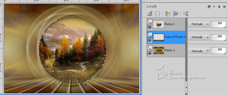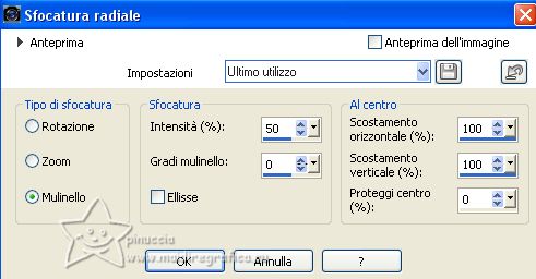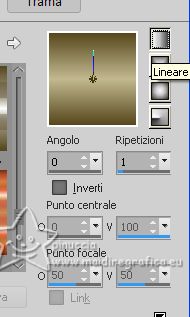 qui puoi trovare qualche risposta ai tuoi dubbi. Se l'argomento che ti interessa non è presente, ti prego di segnalarmelo. Questo tutorial è stato creato con PSP2020 e tradotto con CorelX7, ma può essere eseguito anche con le altre versioni di PSP. Dalla versione X4, il comando Immagine>Rifletti è stato sostituito con Immagine>Capovolgi in orizzontale, e il comando Immagine>Capovolgi con Immagine>Capovolgi in verticale. Nelle versioni X5 e X6, le funzioni sono state migliorate rendendo disponibile il menu Oggetti. Con la nuova versione X7, sono tornati Rifletti>Capovolgi, ma con nuove varianti. Vedi la scheda sull'argomento qui traduzione in francese/traduction en français qui/ici Versioni/Versions quiOccorrente: Un deco a scelta. Materiale qui Per il tube merci NaiseM. Il resto del materiale è di Edith. (in questa pagina trovi i links ai siti dei creatori di tubes) Filtri: se hai problemi con i filtri, consulta la mia sezione filtri qui Filters Unlimited 2.0 qui Graphics Plus - Emboss qui Toadies - What are you qui Tramages - Panel Stripes, Tow the Line qui Mura's Meister - Perspective Tiling qui AAA Frames - Texture Frame qui I filtri Graphics Plus, Toadies e Tramages si possono usare da soli o importati in Filters Unlimited (come fare vedi qui) Se un filtro fornito appare con questa icona ![]() non esitare a cambiare modalità di miscelatura e opacità secondo i colori utilizzati. Nelle ultime versioni di PSP non c'è il gradiente di primo piano/sfondo (Corel_06_029) Puoi usare i gradienti delle versioni precedenti. Trovi qui i gradienti Corel X. ![]() Metti la selezione nella cartella Selezioni. 1. Apri una nuova immagine trasparente 900 x 600 pixels. Imposta il colore di primo piano con #57471d, e il colore di sfondo con #c2b990. ![]() Passa il colore di primo piano a Gradiente di primo piano/sfondo, stile Lineare. ![]() Riempi l'immagine trasparente con il gradiente.2. Livelli>Nuovo livello raster. Selezione>Seleziona tutto. 3. Apri il misted Paisage_22_ESpigai ![]() Modifica>Copia. Torna al tuo lavoro e vai a Modifica>Incolla nella selezione. Selezione>Deseleziona. 4. Effetti>Effetti di immagine>Motivo unico, con i settaggi standard. ![]() 5. Livelli>Unisci>Unisci giù. 6. Regola>Sfocatura>Sfocatura radiale. ![]() Effetti>Effetti di bordo>Aumenta di più. 7. Livelli>Duplica. Immagine>Rifletti. Cambia la modalità di miscelatura di questo livello in Luce diffusa. Livelli>Unisci>Unisci giù. 8. Livelli>Duplica. Immagine>Capovolgi. Abbassa l'opacità di questo livello al 50%. 9. Livelli>Unisci>Unisci giù. Effetti>Effetti di bordo>Aumenta. 10. Livelli>Duplica. Effetti>Plugins>Filters Unlimited 2.0 - Buttons & Frames - Round Button, con i settaggi standard. ![]() 11. Immagine>Ridimensiona, al 90%, tutti i livelli non selezionato. 12. Effetti>Plugins>Toadies - What are you, con i settaggi standard. ![]() 13. Effetti>Plugins>Graphics Plus - Emboss, con i settaggi standard. ![]() 14. Livelli>Unisci>Unisci giù. 15. Selezione>Carica/Salva selezione>Carica selezione da disco. Cerca e carica la selezione lines_1 ![]() 16. Modifica>Incolla come nuovo livello (il tuo misted è sempre in memoria). Selezione>Inverti. Premi sulla tastiera il tasto CANC ![]() 17. Selezione>Inverti. Effetti>Effetti 3D>Sfalsa ombra. ![]() Selezione>Deseleziona. 18. Attiva il livello Raster 1. Livelli>Duplica. 19. Effetti>Plugins>Tramages - Panel Stripes, con i settaggi standard. ![]() 20. Effetti>Plugins>Mura's Meister - Perspective Tiling. ![]() 21. Attiva lo strumento Bacchetta magica , tolleranza 0 e sfumatura 40,![]() e clicca nella parte trasparente per selezionarla. Premi sulla tastiera 4 volte il tasto CANC. ![]() Per il mio esempio, ho aggiunto: Selezione>Carica/Salva selezione>Carica selezione da disco. carica nuovamente la selezione lines_1 La nuova selezione ha sostituito la precedente. ![]() Premi sulla tastiera il tasto CANC ![]() Selezione>Inverti. 22. Attiva nuovamente il livello Raster 1. Effetti>Plugins>Tramages - Tow the line, con i settaggi standard. ![]() Selezione>Deseleziona Risultato ![]() 23. Attiva il livello superiore. Apri il tube della donna woman374_ESpigai(1) ![]() Modifica>Copia. Torna al tuo lavoro e vai a Modifica>Incolla come nuovo livello. Sposta il tube a sinistra.Effetti>Effetti 3D>Sfalsa ombra, a scelta. 24. Apri il tube decor_nmcriacoes_31 ![]() Modifica>Copia. Torna al tuo lavoro e vai a Modifica>Incolla come nuovo livello. Spostalo a destra(per il mio esempio ho cambiato la modalità di miscelatura in Luminanza (esistente). ![]() 25. Apri il testo texto ![]() Modifica>Copia. Torna al tuo lavoro e vai a Modifica>Incolla come nuovo livello. Spostalo in basso a destra.Facoltativo: Abbassa l'opacità di questo livello all'80%. 26. Immagine>Aggiungi bordatura, 2 pixels, simmetriche, colore di primo piano #57471d. Immagine>Aggiungi bordatura, 40 pixels, simmetriche, colore di sfondo #c2b990. 27. Effetti>Plugins>AAA Frames - Texture Frame. ![]() 28. Immagine>Aggiungi bordatura, 15 pixels, simmetriche, colore di sfondo #c2b990. Immagine>Aggiungi bordatura, 2 pixels, simmetriche, colore di primo piano #57471d. 29. Livelli>Unisci>Unisci tutto. Immagine>Ridimensiona, se vuoi. 30. Firma il tuo lavoro e salva in formato jpg. Per i tubes di questo esempio grazie Beatriz e Jeanne ![]() ![]() Puoi scrivermi se hai problemi o dubbi, o trovi un link che non funziona, o soltanto per un saluto. |