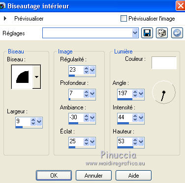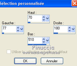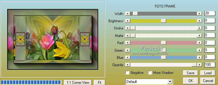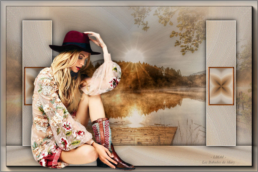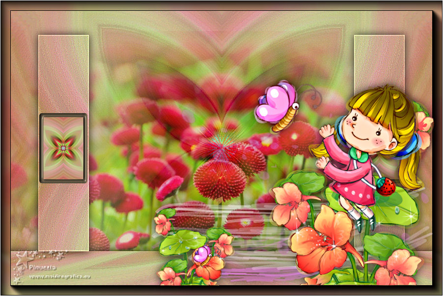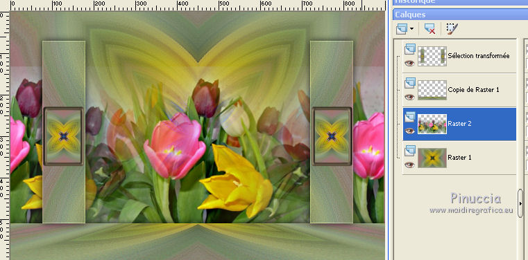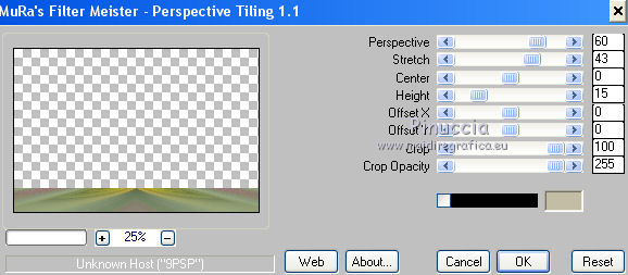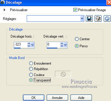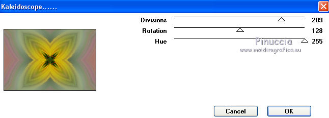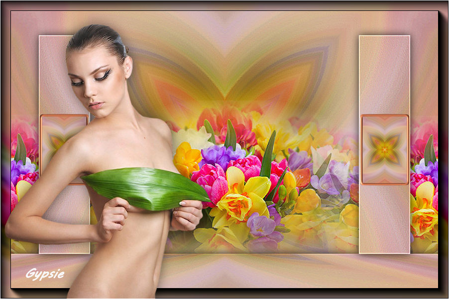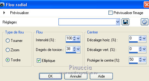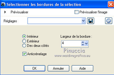Pour traduire ce tutoriel j'ai utilisé CorelX12, mais il peut également être exécuté avec les autres versions. Suivant la version utilisée, vous pouvez obtenir des résultats différents. Depuis la version X4, la fonction Image>Miroir a été remplacée par Image>Renverser horizontalement, et Image>Renverser avec Image>Renverser verticalement . Dans les versions X5 et X6, les fonctions ont été améliorées par la mise à disposition du menu Objets. Avec la nouvelle version X7, nous avons encore Image>Miroir et Image>Renverser/Retourner, mais avec nouvelles différences. Voir les détails à ce sujet ici Certaines dénominations ont changées entre les versions de PSP. Les plus frequentes dénominations utilisées: ![]() Vos versions Nécessaire pour réaliser ce tutoriel: Tubes à choix (un misted coloré et un personnage) Pour les tubes de ma version merci Luz Cristina et Thafs. (ici les liens vers les sites des créateurs de tubes) Modules Externes: consulter, si nécessaire, ma section des filtres ici Filters Unlimited 2.0 ici VM Distortion - Kaleidoscope ici Mura's Meister - Perspective Tiling ici AAA Frames - Foto Frame ici Filtres VM Distortion peuvent être utilisés seuls ou importés dans Filters Unlimited. voir comment le faire ici). Si un filtre est fourni avec cette icône, ![]() en fonction des couleurs utilisées, vous pouvez changer le mode mélange et l'opacité des calques. 1. Ouvrir une nouvelle image transparente 900 x 600 pixels. Sélections>Sélectionner tout. 2. Ouvrir votre misted coloré et Édition>Copier. Minimizer le tube. Revenir sur votre travail et Édition>Coller dans la sélection. Sélections>Désélectionner tout. 3. Effets>Effets d'image>Mosaïque sans jointures, par défaut. ![]() 4. Calques>Fusionner>Tous. Calques>Transformer le calque d'arrière plan. 5. Réglage>Flou>Flou radial. ![]() Effets>Effets de bords>Accentuer davantage. 6. Effets>Modules Externes>VM Distortion - Kaleidoscope. ![]() Réglage>Netteté>Davantage de netteté. 7. Calques>Dupliquer. Image>Redimensionner, à 15%, redimensionner tous les calques décoché. 8. Activer l'outil Baguette magique ![]() et cliquer au déhors de la petite image. ![]() Sélections>Inverser et l'image sera sélectionnée. ![]() 9. Sélections>Modifier>Sélectionner les bordures de la sélection. ![]() 10. Placer en avant plan un couleur de votre travail. Calques>Nouveau calque raster. Remplir le calque avec la couleur d'avant plan.11. Effets>Effets 3D>Biseautage intérieur. ![]() Sélections>Désélectionner tout. 12. Calques>Fusionner>Fusionner le calque de dessous. 13. Image>Rotation libre - 90 degrés à gauche. ![]() Réglage>Netteté>Netteté. 14. Vous positionner sur le calque Raster 1. Activer l'outil Sélection ![]() (peu importe le type de sélection, parce que avec la sélection personnalisée vous obtenez toujours un rectangle), cliquer sur Sélection personnalisée ![]() et setter ces paramètres. ![]() Sélections>Transformer la sélection en calque. 15. Effets>Effets 3D>Ombre portée, couleur noire. ![]() Sélections>Désélectionner tout. 16. Réglage>Netteté>Davantage de netteté. 17. Vous positionner sur le calque du haut de la pile, copie de Raster 1. Effets>Effets d'image>Décalage. ![]() 18. Calques>Fusionner>Fusionner le calque de dessous. Calques>Dupliquer. Image>Miroir. Calques>Fusionner>Fusionner le calque de dessous. 19. Vous positionner sur le calque Raster 1. Calques>Dupliquer. 20. Effets>Modules Externes>Mura's Meister - Perspective Tiling. ![]() Réglage>Netteté>Netteté. 21. Effets>Effets 3D>Ombre portée, comme précédemment. ![]() 22. Vous positionner à nouveau sur le calque du bas de la pile. Édition>Coller comme nouveau calque (votre misted est toujours en mémoire). Positionner bien le tube![]() Réduire l'opacité de ce calque à 70%, ou en fonction de votre tube. 23. Calques>Fusionner>Calques visibles. 24. Effets>Modules Externes>AAA Frames - Foto Frame - 2 fois avec ces réglages ![]() 25. Ouvrir votre tube et Édition>Copier. Revenir sur votre travail et Édition>Coller comme nouveau calque. Image>Redimensionner, si nécessaire. Positionner bien le tube.Effets>Effets 3D>Ombre portée, à choix. 26. Image>Ajouter des bordures, 1 pixel, symétrique, couleur blanche. 27. Réglage>Luminosité et Contraste>Luminosité et Contraste. ![]() 28. Signer votre travail sur un nouveau calque. 29. Calques>Fusionner>Tous et enregistrer en jpg. Version avec tubes de Thafs ![]() ![]() Vos versions Merci ![]() Olimpia ![]() Mary LBDM ![]() Gypsie ![]() Brigittealice ![]() Andréa ![]() Noella ![]() Inpetto13 ![]() Si vous avez des problèmes, ou des doutes, ou vous trouvez un link modifié, ou plenitudement pour me dire que ce tutoriel vous a plu, vous pouvez m'écrire. 16 Août 2019 |