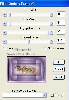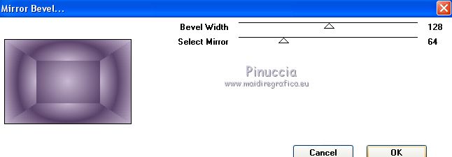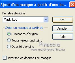 Pour traduire ce tutoriel, créé avec PSPX8, j'ai utilisé CorelX12, mais il peut également être exécuté avec les autres versions. Suivant la version utilisée, vous pouvez obtenir des résultats différents. Depuis la version X4, la fonction Image>Miroir a été remplacée par Image>Renverser horizontalement, et Image>Renverser avec Image>Renverser verticalement . Dans les versions X5 et X6, les fonctions ont été améliorées par la mise à disposition du menu Objets. Avec la nouvelle version X7, nous avons encore Image>Miroir et Image>Renverser/Retourner, mais avec nouvelles différences. Voir les détails à ce sujet ici Certaines dénominations ont changées entre les versions de PSP. Les plus frequentes dénominations utilisées: ![]() Vos versions iciNécessaire pour réaliser ce tutoriel: Tubes à choix: un misted et un tube Le reste du matériel ici Merci pour les tubes Silvie et Lana. (ici les liens vers les sites des créateurs de tubes) Modules Externes: consulter, si nécessaire, ma section des filtres ici Filters Unlimited 2.0 ici Xero - Fritillary ici Alf's Border FX - Mirror Bevel ici Bordermania - Frame#2 ici Graphics Plus - Cross shadow ici Filtres Alf's Border FX et Graphics Plus peuvent être utilisés seuls ou importés dans Filters Unlimited. voir comment le faire ici). Si un filtre est fourni avec cette icône, ![]() en fonction des couleurs utilisées, vous pouvez changer le mode mélange et l'opacité des calques. Dans les plus récentes versions de PSP, vous ne trouvez pas le dégradé d'avant plan/arrière plan ou Corel_06_029. Vous pouvez utiliser le dégradé des versions antérieures. Ici le dossier Dégradés de CorelX. Ouvrir le masque dans PSP et le minimiser avec le reste du matériel. 1. Ouvrir une nouvelle image transparente 900 x 600 pixels. 2. Placer en avant plan la couleur claire #cabad4. et en arrière plan la couleur foncée #5a426a. ![]() Préparer en avant plan un dégradé de premier plan/arrière plan, style Halo. ![]() Remplir l'image transparente du dégradé.3. Effets>Modules Externes>Xero - Fritillary. ![]() Effets>Effets de bords>Accentuer. 4. Effets>Modules Externes>Alf's Border FX - Mirror Bevel, par défaut. ![]() Répéter l'Effet une deuxième fois. ![]() 5. Calques>Nouveau calque raster. Placer en avant plan la couleur Remplir avec la couleur claire d'avant plan #cabad4.6. Calques>Nouveau calque de masque>A partir d'une image. Ouvrir le menu deroulant sous la fenêtre d'origine et vous verrez la liste des images ouvertes. Sélectionner le masque Luci. ![]() Calques>Fusionner>Fusionner le groupe. 7. Réglage>Netteté>Netteté. Calques>Fusionner>Fusionner le calque de dessous. 8. Activer l'outil Sélection , rectangle,et sélectionner le cadre central. ![]() 9. Effets>Effets 3D>Ombre portée, couleur blanche. ![]() 10. Ouvrir le misted et Édition>Copier. Revenir sur votre travail et Édition>Coller dans la sélection. 11. Réglage>Luminosité et Contraste>Luminosité et Contraste. ![]() Sélections>Désélectionner tout. 12. Effets>Modules Externes>Bordermania - Frame#2. ![]() 13. Ouvrir le tube et Édition>Copier. Revenir sur votre travail et Édition>Coller comme nouveau calque. Déplacer le tube à gauche.Effets>Effets 3D>Ombre portée. ![]() Réglage>Netteté>Netteté. 14. Ouvrir le tube Deco_1 Edith et Édition>Copier. Revenir sur votre travail et Édition>Coller comme nouveau calque. Déplacer le tube en haut à droite.Calques>Dupliquer, 2 fois et positionner bien les images.![]() 15. Calques>Fusionner>Fusionner le calque de dessous - 2 fois. 16. Ouvrir le texte et Édition>Copier. Revenir sur votre travail et Édition>Colle comme nouveau calque. Déplacer le texte en bas à droite.17. Image>Ajouter des bordures, 1 pixel, symétrique, couleur foncée #5a426a. Sélections>Sélectionner tout. Image>Ajouter des bordures, 30 pixels, symétrique, couleur claire #cabad4. Sélections>Inverser. 18. Effets>Modules Externes>Graphics Plus - Cross Shadow, par défaut. ![]() 19. Sélections>Inverser. Effets>Effets 3D>Ombre portée. ![]() Sélections>Désélectionner tout. 20. Image>Ajouter des bordures, 1 pixel, symétrique, couleur foncée #5a426a. Réglage>Luminosité et Contraste>Luminosité et Contraste. ![]() 21. Signer votre travail sur un nouveau calque. Calques>Fusionner>Tous et enregistrer en jpg. Version avec tubes de Maryse et Cal ![]() ![]() Vos versions ici![]() Si vous avez des problèmes, ou des doutes, ou vous trouvez un link modifié, ou springtimement pour me dire que ce tutoriel vous a plu, vous pouvez m'écrire. 25 Mars 2021 |