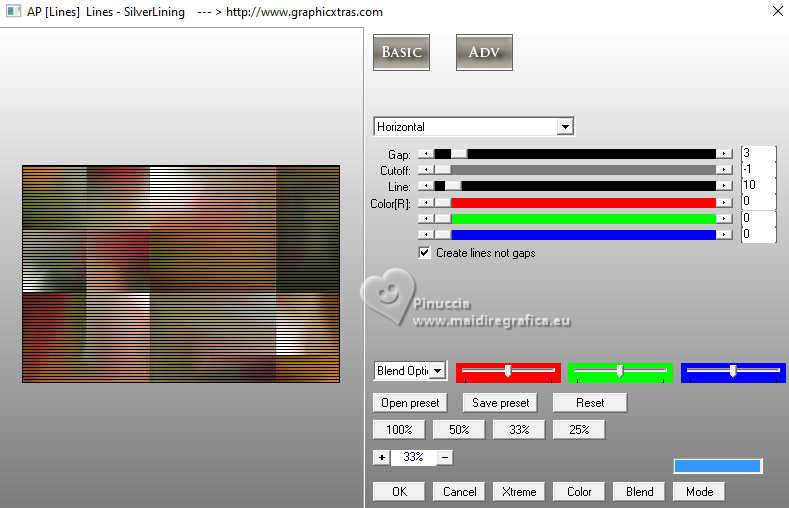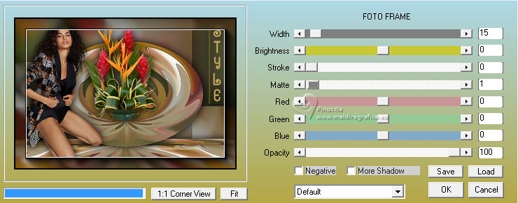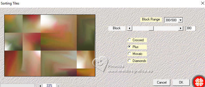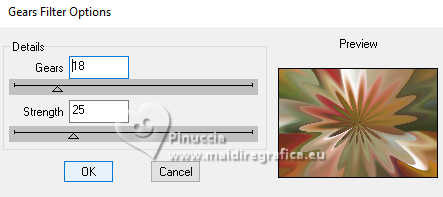 Pour traduire ce tutoriel, créé avec PSP2020, j'ai utilisé PSPX7, mais il peut également être exécuté avec les autres versions. Suivant la version utilisée, vous pouvez obtenir des résultats différents. Depuis la version X4, la fonction Image>Miroir a été remplacée par Image>Renverser horizontalement, et Image>Renverser avec Image>Renverser verticalement . Dans les versions X5 et X6, les fonctions ont été améliorées par la mise à disposition du menu Objets. Avec la nouvelle version X7, nous avons encore Image>Miroir et Image>Renverser/Retourner, mais avec nouvelles différences. Voir les détails à ce sujet ici Certaines dénominations ont changées entre les versions de PSP. Les plus frequentes dénominations utilisées: ![]() traduction italienne ici Vos versions iciNécessaire pour réaliser ce tutoriel: Deux tubes à choix Le reste du matériel: ![]() Pour mes tubes merci Beatriz et Krys (ici les liens vers les sites des créateurs de tubes) ![]() consulter, si nécessaire, ma section des filtres ici Mehdi - Sorting Tiles ici Mura's Meister - Perspective Tiling ici DSB Flux - Gears qui AP Lines - Lines SilverLining qui AAA Frames - Foto Frame / AAA Filters - Custom qui ![]() en fonction des couleurs utilisées, vous pouvez changer le mode mélange et l'opacité des calques. ![]() Placer le preset Emboss 3 dans le dossier Paramètres par défaut. 1. Ouvrir une nouvelle image transparente 950 x 650 pixels. 2. Sélections>Sélectionner tout. Ouvrir votre misted et Édition>Copier. Revenir sur votre travail et Édition>Coller dans la sélection. Sélections>Désélectionner tout. 3. Effets>Effets d'image>Mosaïque sans jointures ![]() 4. Calques>Fusionner>Tous. 5. Calques>Transformer le calque d'arrière plan. 6. Réglage>Flou>Flou gaussien - rayon 30. ![]() 7. Effets>Modules Externes>Mehdi - Sorting Tiles. ![]() 8. Effets>Effets de bords>Accentuer davantage. 9. Calques>Dupliquer. Effets>Modules Externes>DSB Flux - Gears. ![]() 10. Effets>Effets de réflexion>Miroir rotatif, par défaut. ![]() 11. Effets>Filtre personnalisé - Sélectionner le preset Emboss 3 et ok. ![]() 12. Calques>Dupliquer. Effets>Effets de distorsion>Coordonnées polaires. ![]() 13. Image>Redimensionner, à 70%, redimensionner tous les calques décoché. Réglage>Netteté>Netteté ou Netteté>Davantage 14. Effets>Effets 3D>Ombre portée, couleur noire #000000. ![]() 15. Vous positionner sur le calque Copie de Raster 1. Effets>Modules Externes>Mura's Meister - Perspective Tiling. ![]() 16. Réglage>Netteté>Davantage de netteté. 17. Effets>Effets 3D>Ombre portée, couleur noire #000000. ![]() 18. Vous positionner sur le calque Raster 1. Effets>Modules Externes>AP [Lines] - Lines SilverLining., ![]() 19. Vous positionner sur le calque du haut de la pile. Ouvrir le tube floral ou autre et Édition>Copier. Revenir sur votre travail et Édition>Coller comme nouveau calque. Image>Redimensionner, si nécessaire. Réglage>Netteté>Netteté. Placer le tube au centre.Effets>Effets 3D>Ombre portée, à choix. 20. Ouvrir le tube principal et Édition>Copier. Revenir sur votre travail et Édition>Coller comme nouveau calque. Image>Redimensionner, si nécessaire. Réglage>Netteté>Netteté. Positionner le tube à votre goût.Effets>Effets 3D>Ombre portée, à choix. 21. Ouvrir le texte ![]() Édition>Copier. Revenir sur votre travail et Édition>Coller comme nouveau calque. Coloriser si nécessaire. 22. Effets>Effets d'image>Décalage. ![]() 23. Calques>Fusionner>Calques visibles. 24. Effets>Modules Externes>AAA Frames - Foto Frame. ![]() 25. Effets>Modules Externes>AAA Filters - Custom - Laplace ou Sharp à choix. ![]() 26. Signer votre travail et enregistrer en jpg. Pour les tubes de cette version merci Renée ![]() ![]() Si vous avez des problèmes, ou des doutes, ou vous trouvez un link modifié, ou style2ment pour me dire que ce tutoriel vous a plu, vous pouvez m'écrire. |