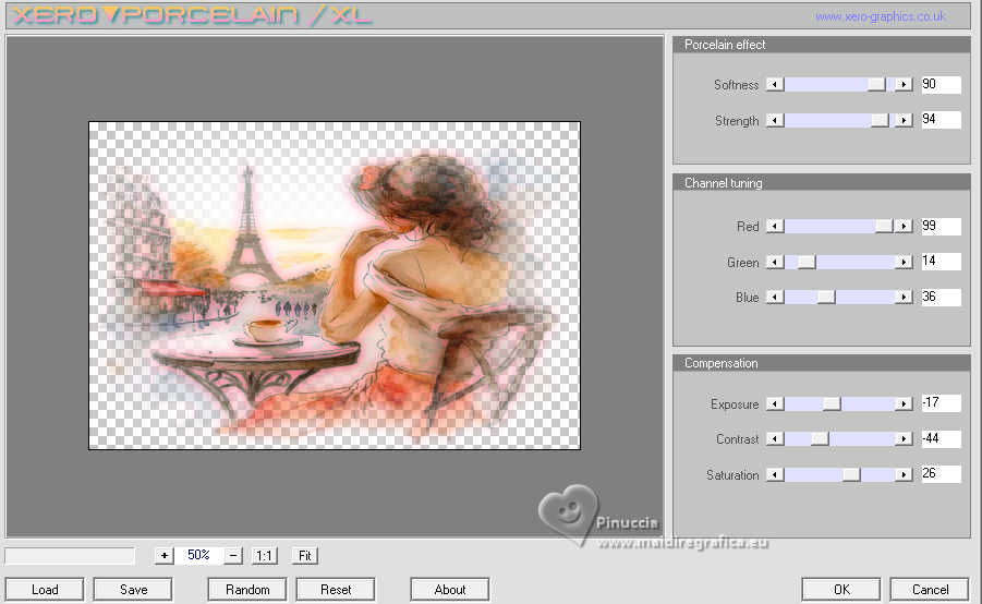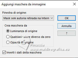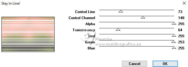 qui puoi trovare qualche risposta ai tuoi dubbi. Se l'argomento che ti interessa non è presente, ti prego di segnalarmelo. Questo tutorial è stato realizzato con PSP2020 e tradotto con PSPX9 e PSP2020, ma può essere eseguito anche con le altre versioni di PSP. Dalla versione X4, il comando Immagine>Rifletti è stato sostituito con Immagine>Capovolgi in orizzontale, e il comando Immagine>Capovolgi con Immagine>Capovolgi in verticale. Nelle versioni X5 e X6, le funzioni sono state migliorate rendendo disponibile il menu Oggetti. Con la nuova versione X7, sono tornati Rifletti>Capovolgi, ma con nuove varianti. Vedi la scheda sull'argomento qui ![]() Occorrente: Un misted e un tube principale. Il resto del materiale ![]() Per il tube del mio esempio grazie Luz Cristina. (in questa pagina trovi i links ai siti dei creatori di tubes) Filtri: se hai problemi con i filtri, consulta la mia sezione filtri qui Filters Unlimited 2.0 qui VM Extravaganza - Stay in line qui Mehdi - Wavy Lab qui Xero XL - Porcelain qui I filtri VM Extravaganza si possono usare da soli o importati in Filters Unlimited (come fare vedi qui) Se un filtro fornito appare con questa icona ![]() non esitare a cambiare modalità di miscelatura e opacità secondo i colori utilizzati. ![]() Apri la maschera in PSP e minimizzala con il resto del materiale. 1. Apri una nuova immagine trasparente 900 x 600 pixels. 2. Scegli 3 colori dal tuo materiale. Colori usati: #feb0a4 - #635f5c - #989c69 ![]() 3. Imposta il colore di primo piano con il colore chiaro feb0a4, e il colore di sfondo con il colore scuro #635f5c. 4. Effetti>Plugins>Mehdi - Wavy Lab Questo filtro creato gradienti con i colori della paletta: il primo è il colore di sfondo, il secondo quello di primo piano. Cambia il terzo colore creato dal filtro con il colore 3 #989c69. ![]() 5. Effetti>Effetti di immagine>Motivo unico - Fianco a fianco. ![]() 6. Effetti>Plugins>VM Extravaganza - Stay in Line ![]() 7. Livelli>Nuovo livello raster. 8. Selezione>Seleziona tutto. 9. Apri il tuo misted e vai a Modifica>Copia. Torna al tuo lavoro e vai a Modifica>Incolla nella selezione. Selezione>Deseleziona. 10. Effetti>Plugins>Xero XL - Porcelain ![]() 11. Livelli>Nuovo livello raster. Riempi il livello con uno dei tuoi colori.Per l'esempio ho usato il colore di primo piano #feb0a4. 12. Livelli>Nuovo livello maschera>Da immagine Apri il menu sotto la finestra di origine e vedrai la lista dei files aperti. Seleziona la maschera mask sem autoria retirada na internet ![]() Effetti>Effetti di bordo>Aumenta. Livelli>Unisci>Unisci gruppo. 13. Effetti>Effetti 3D>Sfalsa ombra, colore bianco. ![]() 14. Apri Elaine_Word Coffee in Paris ![]() Modifica>Copia. Torna al tuo lavoro e vai a Modifica>Incolla come nuovo livello. 15. Immagine>Aggiungi bordatura, 2 pixels, simmetriche, colore di sfondo #635f5c. Immagine>Aggiungi bordatura, 2 pixels, simmetriche, colore di primo piano #feb0a4. Immagine>Aggiungi bordatura, 2 pixels, simmetriche, colore 3 #989c69. Usa i tuoi colori. 16. Apri il tuo tube principale e vai a Modifica>Copia. Torna al tuo lavoro e vai a Modifica>Incolla come nuovo livello. Posiziona il tube a tuo piacimento.Effetti>Effetti 3D>Sfalsa ombra, a scelta. Livelli>Unisci>Unisci giù. 17. Apri Elaine_frase I express myself ![]() Modifica>Copia. Torna al tuo lavoro e vai a Modifica>Incolla come nuovo livello. Posiziona il testo in armonia con il tuo lavoro.18. Immagine>Aggiungi bordatura, 3 pixels, simmetriche, colore bianco #ffffff. 19. Firma il tuo lavoro e salva in formato jpg. ![]() Le vostre versioni. Grazie![]() Marygraphics ![]() Puoi scrivermi se hai problemi o dubbi, o trovi un link che non funziona, o soltanto per un saluto. |