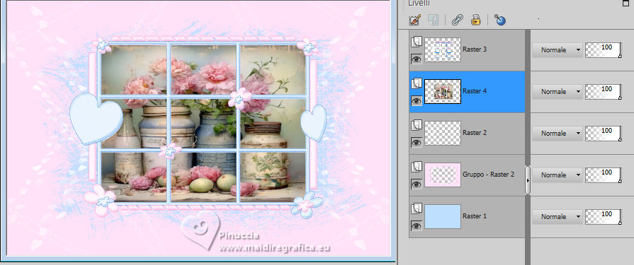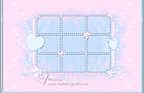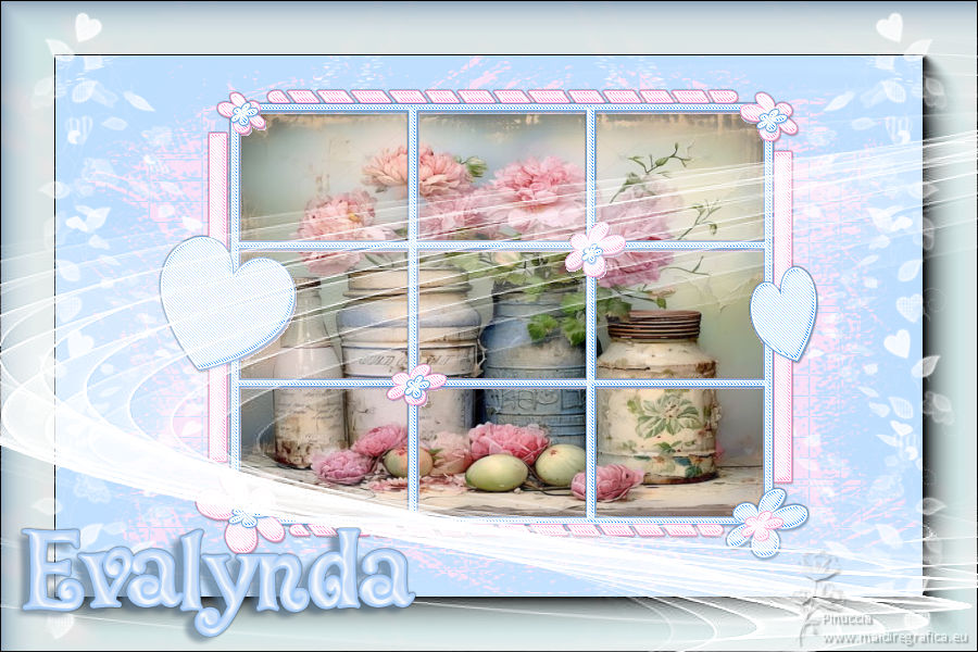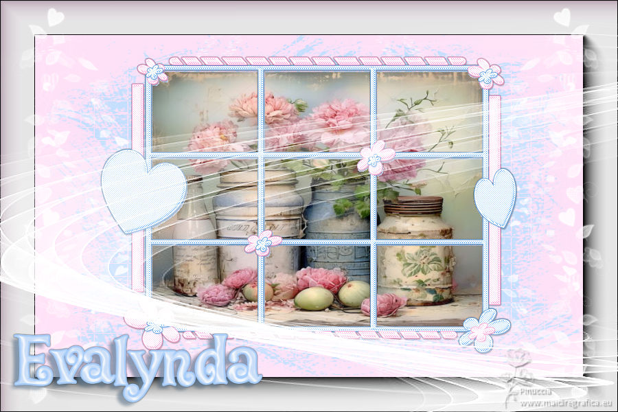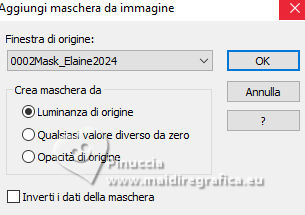 qui puoi trovare qualche risposta ai tuoi dubbi. Se l'argomento che ti interessa non è presente, ti prego di segnalarmelo. Questo tutorial è stato realizzato con PSP2020 e tradotto con PSPX9 e PSP2020, ma può essere eseguito anche con le altre versioni di PSP. Dalla versione X4, il comando Immagine>Rifletti è stato sostituito con Immagine>Capovolgi in orizzontale, e il comando Immagine>Capovolgi con Immagine>Capovolgi in verticale. Nelle versioni X5 e X6, le funzioni sono state migliorate rendendo disponibile il menu Oggetti. Con la nuova versione X7, sono tornati Rifletti>Capovolgi, ma con nuove varianti. Vedi la scheda sull'argomento qui ![]() Occorrente: Un'immagine a scelta Il resto del materiale ![]() (in questa pagina trovi i links ai siti dei creatori di tubes) Filtri: se hai problemi con i filtri, consulta la mia sezione filtri qui Mura's Meister - Perspective Tiling qui AAA Frames - Foto Frame qui ![]() non esitare a cambiare modalità di miscelatura e opacità secondo i colori utilizzati. ![]() Apri le maschere in PSP e minimizzale con il resto del materiale. 1. Apri una nuova immagine trasparente 900 x 600 pixels. 2. Scegli due colori per lavorare; per l'esempio: colore di primo piano #bfdfff, colore di sfondo #ffe1f7. ![]() 3. Riempi l'immagine trasparente con uno dei due colori.4. Livelli>Nuovo livello raster. Riempi il livello con l'altro colore.5. Livelli>Nuovo livello maschera>Da immagine. Apri il menu sotto la finestra di origine e vedrai la lista dei files aperti. Seleziona la maschera 00018Mask_Elaine2024 ![]() Effetti>Effetti di bordo>Aumenta. Livelli>Unisci>Unisci gruppo. 6. Apri Elaine2024_Barra-Brush ![]() Modifica>Copia. Torna al tuo lavoro e vai a Modifica>Incolla come nuovo livello. 7. Effetti>Plugins>Mura's Meister - Perspective Tiling. ![]() 8. Livelli>Duplica. Immagine>Rifletti>Rifletti verticalmente (Immagine>Capovolgi). Livelli>Unisci>Unisci giù. 9. Apri Frame-Elaine2024-Adobe01 ![]() Modifica>Copia. Torna al tuo lavoro e vai a Modifica>Incolla come nuovo livello. 10. Attiva lo strumento Bacchetta magica ![]() clicca nei riquadri per selezionarli. ![]() 11. Livelli>Nuovo livello raster. Apri la tua immagine e vai a Modifica>Copia. Torna al tuo lavoro e vai a Modifica>Incolla nella selezione. Selezione>Deseleziona 12. Livelli>Disponi>Sposta giù. ![]() 13. Attiva il livello superiore. Effetti>Effetti 3D>Sfalsa ombra. ![]() 14. Livelli>Unisci>Unisci tutto. 15. Effetti>Plugins>AAA Frames - Foto Frame. ![]() 16. Attiva nuovamente Elaine2024_Barra-Brush e vai a Modifica>Copia. Torna al tuo lavoro e vai a Modifica>Incolla come nuovo livello. 17. Livelli>Unisci>Unisci tutto. 18. Imposta il colore di primo piano con il colore bianco. Livelli>Nuovo livello raster. Riempi il livello con il colore bianco.19. Livelli>Nuovo livello maschera>Da immagine. Apri il menu sotto la finestra di origine e seleziona la maschera 0002Mask_Elaine2024 ![]() Effetti>Effetti di bordo>Aumenta. Livelli>Unisci>Unisci gruppo. 20. Apri evalynda ![]() Modifica>Copia. Torna al tuo lavoro e vai a Modifica>Incolla come nuovo livello. Sposta il testo in basso a sinistra.Livelli>Unisci>Unisci tutto. Firma il tuo lavoro e salva in formato jpg. ![]() ![]() ![]() Puoi scrivermi se hai problemi o dubbi, o trovi un link che non funziona, o soltanto per un saluto. |