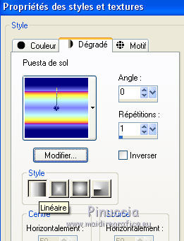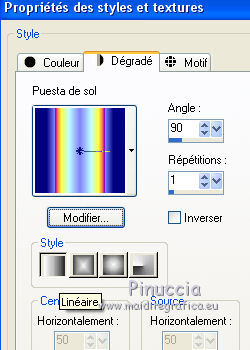 2. Placer en avant plan Dégradé et sélectionner le dégradé Puesta de sol, style Linéaire.