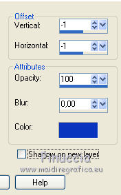 Effects>3D Effects>Drop Shadow, color #0d36bd (the mask color).