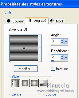 Préparer en avant plan Dégradé et sélectionner le dégradé Silver Lia 01, style Linéaire.