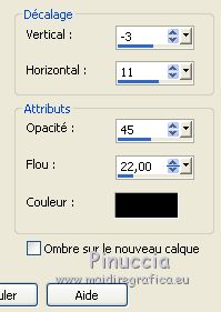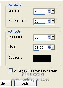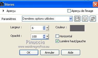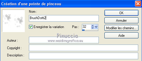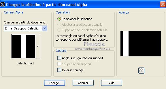 Le tutoriel a été réalisé avec Corel 2018 et traduit avec CorelX2 et CorelX5, mais il peut également être exécuté avec les autres versions. Suivant la version utilisée, vous pouvez obtenir des résultats différents. Depuis la version X4, la fonction Image>Miroir a été remplacée par Image>Renverser horizontalement, et Image>Renverser avec Image>Renverser verticalement. Dans les versions X5 et X6, les fonctions ont été améliorées par la mise à disposition du menu Objets. Avec la nouvelle version X7 nous avons encore Miroir et Renverser, mais avec nouvelles différences. Consulter, si vouz voulez, mes notes ici Certaines dénominations ont changées entre les versions de PSP. Les plus frequentes différences: ![]() traduction italienne ici vos versions ici Nécessaire pour réaliser ce tutoriel: Un tube à choix. Le reste du matériel ici Le tube de ma version n'est pas signé (dans cette page vous trouvez les liens aux sites des tubers. Modules Externes. consulter, si nécessaire, ma section de filtre ici Mehdi - Wavy Lab 1.1 ici Mura's Meister - Perspective Tiling ici AP 01 [Innovations] - Lines SilverLining ici L&K's - L&K's Zitah ici Graphics Plus - Cross Shadow ici ![]() Si vous voulez utiliser vos propres couleurs, n'hésitez pas à changer le mode et l'opacité des calques SFONDO 1. Ouvrir une nouvelle image transparente 950 x 600 pixels. Placer en avant plan la couleur #a8a7a0, et en arrière plan la couleur #323033. ![]() Effets>Modules Externes>Mehdi - Wavy Lab 1.1. Ce filtre crée des dégradés avec les couleurs de votre palette: la première est la couleur d'arrière plan, la deuxième est la couleur d'avant plan. Garder les autres deux couleurs créées par le filtre ![]() 2. Ouvrir le pinceau Erina_Dotti2. Effacer le watermark. Fichier>Exporter>Pinceau personnalisé. Donner un nom au pinceau et ok. ![]() Calques>Nouveau calque raster. Activer l'outil Pinceau ![]() chercher et sélectionner le pinceau que vous avez exporté. ![]() Appliquer le pinceau à droite et à gauche, à peu près comme ci-dessous. ![]() 3. Déco Colonne Ouvrir Erina_Oszlopos_Selection_AlphaChannel. Sélections>Charger/Enregistrer une sélections>Enregistrer sur le canal alpha. Donner un nom à choix ou garder le nom que vous trouvez. ![]() 4. Minimiser l'image et revenir sur votre travail. Sélections>Charger/Enregistrer une sélection>Charger à partir d'un canal alpha. Charger la sélection que vous avez enregistrée. ![]() 5. Calques>Nouveau calque raster. ![]() Remplir la sélection avec la couleur d'avant plan.6. Effets>Effets de textures>Stores, couleur #625f65. ![]() Sélections>Désélectionner tout. et maintenant vous pouvez fermer la sélection sans enregistrer les modifications 7.Cadre Ouvrir AlphaSelection2020. Sélections>Charger/Enregistrer une sélections>Enregistrer sur le canal alpha. Donner un nome à choix ou garder le nom que vous trouvez. ![]() Minimiser l'image et revenir sur votre travail. Sélections>Charger/Enregistrer une sélection>Charger à partir d'un canal alpha. Charger la sélection que vous avez enregistrée. ![]() Calques>Nouveau calque raster. Placer en avant plan la couleur blanche. Remplir la sélection avec la couleur blanche #ffffff.Effets>Effets 3D>Ombre portée. ![]() Sélections>Désélectionner tout. ![]() 8. Sol Vous positionner sur le calque Raster 1. Calques>Dupliquer. Effets>Modules Externes>AP 01 [Innovations] - Lines SilverLining. ![]() 9. Effets>Modules Externes>L&K's - L&K Zitah, par défaut. ![]() 10. Effets>Modules Externes>Graphics Plus - Cross Shadow, par défaut. ![]() 11. Effets>Modules Externes>Mura's Meister - Perspective Tiling. ![]() 12. Activer l'outil Gomme ![]() ![]() Dégrader le bord du "sol". ![]() 13. Décos Vous positionner sur le calque du haut de la pile. Ouvrir le tube decor - Édition>Copier. Revenir sur votre travail et Édition>Coller comme nouveau calque. Déplacer le tube à gauche.![]() 14. Ouvrir le bouton "gomb" - Édition>Copier. Revenir sur votre travail et Édition>Coller comme nouveau calque. Positionner le bouton sur le bouton plus grand.![]() Calques>Dupliquer, 4 fois, et positionner les boutons sur les autres.![]() Activer l'outil Stylo ![]() style de ligne Diamonds ou Losange, taille 14 pixels ![]() Vous positionner sur le calque du cadre, Raster 4. Tenir enfoncé shift et tracer deux lignes verticales avec la couleur blanche. ![]() Calques>Convertir en calque raster. 15. Tubes dans le cadre Vous positionner sur le calque du cadre, Raster 4. Ouvrir le tube de la femme et sélectionner la partie supérieur. Édition>Copier, et minimiser le tube. Revenir sur votre travail et Édition>Coller comme nouveau calque. Redimensionner, si nécessaire, et positionner l'image sur la partie gauche du cadre.Calques>Agencer>Déplacer vers le bas. ![]() Calques>Dupliquer. Image>Miroir et positionner bien l'image à droite.![]() 16.Arrière plan Calques>Fusionner>Calques visibles. Calques>Dupliquer. Image>Redimensionner, à 85%, redimensionner tous les calques décoché. ![]() Effets>Effets 3D>Ombre portée. ![]() Vous positionner sur le calque du bas de la pile. Réglage>Flou>Flou gaussien - rayon 45. ![]() 17. Vous positionner sur le calque du haut de la pile. Activer à nouveau le tube de la femme. Édition>Anuler Sélectionner. Édition>Copier. Revenir sur votre travail et Édition>Coller comme nouveau calque. Positionner bien le tube.![]() Effets>Effets 3D>Ombre portée, comme précédemment. ![]() Signer votre travail sur un nouveau calque. Ajouter, si vous voulez, les watermarks de l'auteur et du traducteur. Calques>Fusionner>Tous et enregistrer en jpg. Versions avec tubes de Jet ![]() ![]() ![]() Vous pouvez m'écrire pour n'importe quel problème, ou doute, ou si vous trouvez un link modifié, ou seulement pour me dire que ce tutoriel vous a plu. 7 Septembre 2020 |