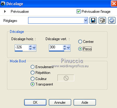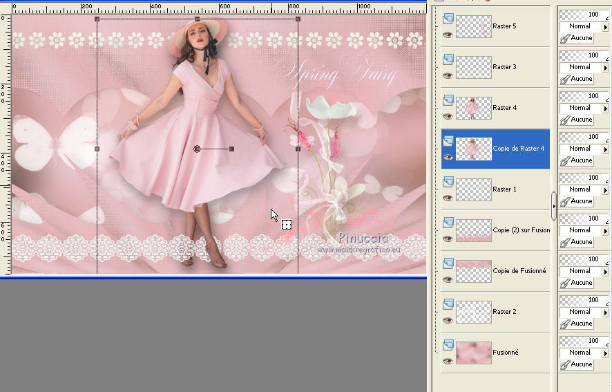 Le tutoriel a été réalisé avec Corel 2018 et traduit avec CorelX2 et CorelX5, mais il peut également être exécuté avec les autres versions. Suivant la version utilisée, vous pouvez obtenir des résultats différents. Depuis la version X4, la fonction Image>Miroir a été remplacée par Image>Renverser horizontalement, et Image>Renverser avec Image>Renverser verticalement. Dans les versions X5 et X6, les fonctions ont été améliorées par la mise à disposition du menu Objets. Avec la nouvelle version X7 nous avons encore Miroir et Renverser, mais avec nouvelles différences. Consulter, si vouz voulez, mes notes ici Certaines dénominations ont changées entre les versions de PSP. Les plus frequentes différences: ![]() traduction italienne ici vos versions ici Nécessaire pour réaliser ce tutoriel: Matériel ici (dans cette page vous trouvez les liens aux sites des tubers. Modules Externes. consulter, si nécessaire, ma section de filtre ici AP 16 (Power Blend) - Distort-GridEdge qui Mura's Meister - Perspective Tiling ici ![]() Si vous voulez utiliser vos propres couleurs, n'hésitez pas à changer le mode et l'opacité des calques 1. Ouvrir une nouvelle image 1200 x 750 pixels, arrière plan #e8b9bf. ![]() pour suivre le tutoriel il est mieux travailler, comme l'auteure, avec une image plus grande. À la fin, vous pourrez la réduire à 950 pixels de largeur 2. Calques>Nouveau calque raster. Sélections>Sélectionner tout. Ouvrir le tube de la femme, effacer le watermark, et Édition>Copier. Minimiser le tube. Revenir sur votre travail et Édition>Coller dans la sélection. Sélections>Désélectionner tout. 3. Effets>Effets d'image>Mosaïque sans jointures, par défaut. ![]() 4. Réglage>Flou>Flou gaussien - rayon 45. ![]() 5. Calques>Fusionner>Calques visibles. 6. Calques>Dupliquer. Image>Redimensionner, à 70%, redimensionner tous les calques décoché. ![]() 7. Effets>Effets de distorsion>Coordonnées polaires. ![]() 8. Activer l'outil Sélecteur ![]() en mode Échelle ![]() pousser le noeud central inférieur ![]() vers le haut, jusqu'à 300 pixels. ![]() Si vous ne pouvez pas obtenir ce motif pour le filtre AP16, vous pouvez enregistrer l'image ci-dessous en png et la coloriser si vous travaillez avec une autre couleur. Faites clic droite sur cette image en enregistrer en png. ![]() 9. Effets>Modules Externes>AP 16 (Power Blend) - Distort - GridEdge ![]() Effets>Effets 3D>Ombre portée ![]() 10. Calques>Dupliquer. Activer l'outil Sélecteur ![]() et pousser le noeud central supérieur ![]() vers le bas, jusqu'au bord ![]() 11. Effets>Modules Externes>Mura's Meister - Perspective Tiling. ![]() Résultat ![]() Image>Renverser ![]() Déplacer l'image en bas, sur le bord.![]() Après pousser le noeud central inférieur vers le haut, jusqu'à 400 pixels. ![]() 13. Ouvrir le tube Erina_flowers png - Édition>Copier. Revenir sur votre travail et Édition>Coller comme nouveau calque. Image>Redimensionner, à 15%, redimensionner tous les calques décoché. Effefts>Effets d'image>Décalage. ![]() Effacer la dernière fleur incomplète.Calques>Dupliquer. Image>Miroir. Déplacer la ligne à droite après la dernière fleur.(ne pas oublier d'effacer la fleur incomplète) ![]() Pour un déplacement linéaire, après avoir activer l'outil Déplacement, utiliser les flèches du clavier Calques>Dupliquer et déplacer la ligne à droite.![]() Calques>Fusionner>Fusionner le calque de dessous - 2 fois. 14. Vous positionner sur le calque Fusionné. Ouvrir l'image des papillons, pillangok_png, Édition>Copier. Revenir sur votre travail et Édition>Coller comme nouveau calque. ![]() 15. Vous positionner sur le calque du haut de la pile. Ouvrir le tube Erina_csipkesor_png - Édition>Copier. Revenir sur votre travail et Édition>Coller comme nouveau calque. Effets>Effets d'image>Décalage. ![]() ![]() 16. Activer à nouveau le tube de la femme - Édition>Copier. Revenir sur votre travail et Édition>Coller comme nouveau calque. Image>Redimensionner, à 130%, redimensionner tous les calques décoché. Placer ce calque au dessous de la deuxième dentelle. ![]() Sélections>Sélectionner tout. Sélections>Flottante. Sélections>Statique. 17. Activer l'outil Gomme , taille 26![]() Activer le calque de la dentelle et effacer la partie qui couvre le pied du tube ![]() 18. Ouvrir le bouquet - csokor - Édition>Copier. Revenir sur votre travail et Édition>Coller comme nouveau calque. Image>Redimensionner,à 120%, redimensionner tous les calques décoché. Déplacer le tube à droite.![]() 19. Ouvrir le texte - Édition>Copier. Revenir sur votre travail et Édition>Coller comme nouveau calque. Image>Redimensionner, à 40%, redimensionner tous les calques décoché. Déplacer le texte en haut à droite![]() 20. Vous positionner sur le calque du tube de la femme. Effets>Effets 3D>Ombre portée. ![]() Calques>Dupliquer. Réglage>Flou>Flou gaussien - rayon 20 ![]() Calques>Agencer>Déplacer vers le bas. Avec l'outil Sélecteur pousser un peu le flou vers le bas.![]() 21. Signer votre travail su un nouveau calque. petite note sur le watermark: je ne demande pas de mettre le watermark sur les versions faites après mes traductions. Mais, si vous décidez d'utiliser le watermark de l'auteur, j'apprécierais que mon travail de traducteur soit également respecté. Pour cela, j'ai ajouté au matériel mon watermark. Image>Redimensionner, à 950 pixels de largeur, redimensionner tous les calques coché. Calques>Fusionner>Tous et enregistrer en jpg. ![]() Vous pouvez m'écrire pour n'importe quel problème, ou doute, ou si vous trouvez un link modifié, ou seulement pour me dire que ce tutoriel vous a plu. 31 Août 2019 |
