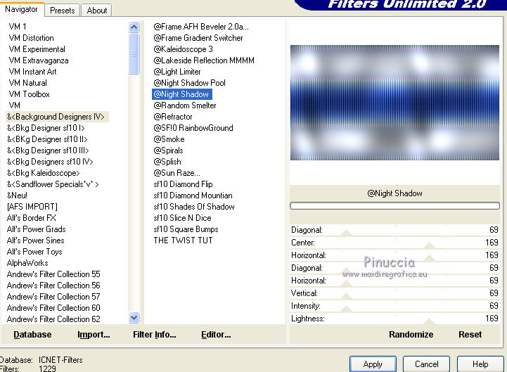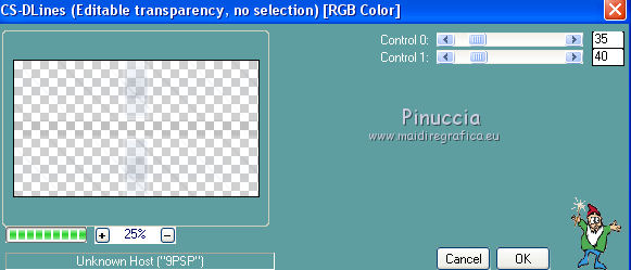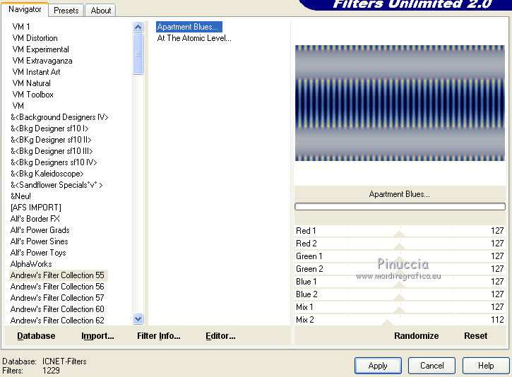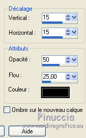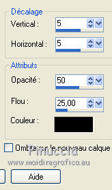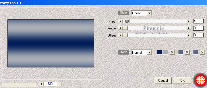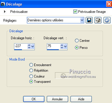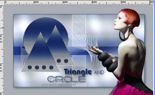 Le tutoriel a été réalisé avec Corel 2018 et traduit avec CorelX2 et CorelX5, mais il peut également être exécuté avec les autres versions. Suivant la version utilisée, vous pouvez obtenir des résultats différents. Depuis la version X4, la fonction Image>Miroir a été remplacée par Image>Renverser horizontalement, et Image>Renverser avec Image>Renverser verticalement. Dans les versions X5 et X6, les fonctions ont été améliorées par la mise à disposition du menu Objets. Avec la nouvelle version X7 nous avons encore Miroir et Renverser, mais avec nouvelles différences. Consulter, si vouz voulez, mes notes ici Certaines dénominations ont changées entre les versions de PSP. Les plus frequentes différences: ![]() traduction italienne ici vos versions ici Nécessaire pour réaliser ce tutoriel: Matériel ici Pour le tube merci Cady. Le reste du matériel est de Erina. (dans cette page vous trouvez les liens aux sites des tubers. Modules Externes. consulter, si nécessaire, ma section de filtre ici Filters Unlimited 2.0 ici &<Background Designer IV> - @Night Shadow (da importare in Unlimited) ici Mehdi - Wavy Lab 1.1. ici Carolaine and Sensibility - CS-DLines ici Andrew's Filters 55 - Apartment Blues ici Filtres Andrew's peuvent être utilisés seuls ou importés dans Filters Unlimited. voir comment le faire ici). Si un filtre est fourni avec cette icône, ![]() Si vous voulez utiliser vos propres couleurs, n'hésitez pas à changer le mode et l'opacité des calques 1. Ouvrir une nouvelle image transparente 900 x 500 pixels. Placer en avant plan la couleur #aaaf87, et en arrière plan la couleur #001e57. ![]() 2. Effets>Modules Externes>Mehdi - Wavy Lab 1.1. Ce filtre crée des dégradés avec les couleurs de votre palette: la première est la couleur d'arrière plan, la deuxième est la couleur d'avant plan. Garder les autres deux couleurs créées par le filtre ![]() 3. Effets>Modules Externes>Filters Unlimited 2.0 - Andrew's Filter 55 - Apartment Blues. ![]() adapter les réglages aux couleurs utilisées 4. Ouvrir le tube "Erina 4Way Average" - Édition>Copier. Revenir sur votre travail et Édition>Coller comme nouveau calque. ![]() 5. Ouvrir "Erina Circle Deco" - Édition>Copier. Revenir sur votre travail et Édition>Coller comme nouveau calque. Image>Renverser. 6. Effets>Effets d'image>Décalage. ![]() ![]() 7. Ouvrir "Erina Triangle Deco" - Édition>Copier. Revenir sur votre travail et Édition>Coller comme nouveau calque. Activer l'outil Sélecteur ![]() en mode Échelle ![]() pousser le noeud inférieur central vers le haut jusqu'au bord de la bande ![]() 8. Si vous ne voyez pas le régles: Affichage>Regles. Déplacer le triangle à gauche, en tenant compte des lignes rouges. ![]() 9. Ouvrir le tube "Erina buttons" - Édition>Copier. Revenir sur votre travail et Édition>Coller comme nouveau calque. Déplacer le tube sur la partie claire du rectangle.![]() Calques>Fusionner>Fusionner le calque de dessous. Calques>Dupliquer. Déplacer l'image un peu plus à gauche et en bas, comme ci-dessous.![]() 10. Calques>Fusionner>Fusionner le calque de dessous - 2 fois. 11. Vous positionner sur le calque Raster 2. ![]() Effets>Modules Externes>Carolaine and Sensibility - CS-DLines. ![]() 12. Vous positionner sur le calque du bas de la pile, Raster 1. Effets>Modules Externes>Filters Unlimited 2.0 - &<Background Designer IV> - @Night Shadow. ![]() 13. Vous positionner sur le calque Raster 2. Ouvrir "deco orig" - Édition>Copier. Revenir sur votre travail et Édition>Coller comme nouveau calque. Activer l'outil Sélecteur ![]() et serrer et aligner le tube dans la bande centrale. ![]() Placer le calque en mode Écran. 14. Ouvrir le texte "Erina sub-title" - Édition>Copier. Revenir sur votre travail et Édition>Coller comme nouveau calque. Déplacer le texte en bas à gauche.![]() 15. Image>Ajouter des bordures, 1 pixel, symétrique, couleur foncée #001e57. Sélections>Sélectionner tout. Image>Ajouter des bordures, 60 pixels, symétrique, couleur claire #adaeb7. Effets>Effets 3D>Ombre portée, couleur noire. ![]() Sélections>Désélectionner tout. 16. Ouvrir le tube de la femme, effacer le watermark et Édition>Copier. Revenir sur votre travail et Édition>Coller comme nouveau calque. Image>Miroir. Image>Redimensionner, à 90%, redimensionner tous les calques décoché. Déplacer le tube à droite![]() 17. Effets>Effets 3D>Ombre portée, couleur noire. ![]() 18. Signer votre travail sur un nouveau calque. Calques>Fusionner>Tous et enregistrer en jpg. ![]() Vous pouvez m'écrire pour n'importe quel problème, ou doute, ou si vous trouvez un link modifié, ou seulement pour me dire que ce tutoriel vous a plu. 5 Août 2019 |