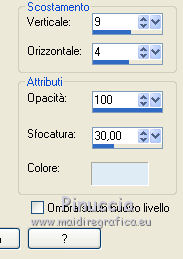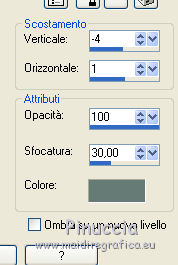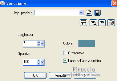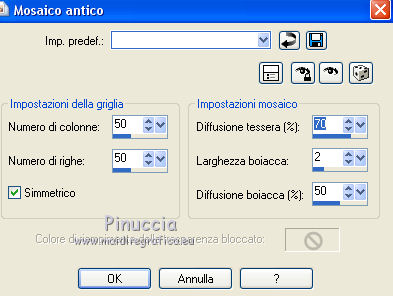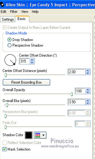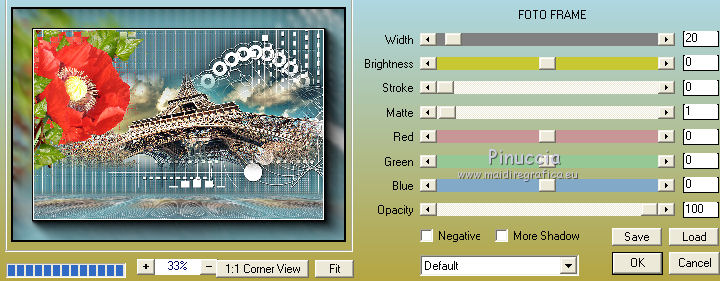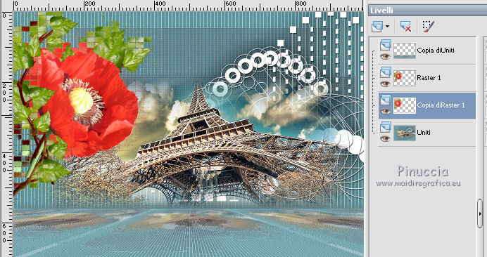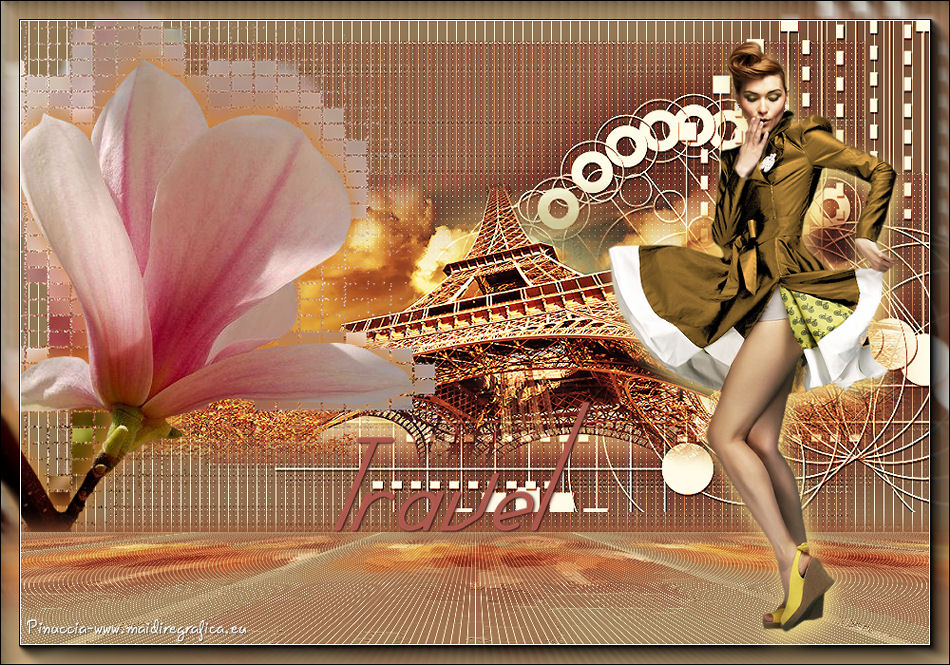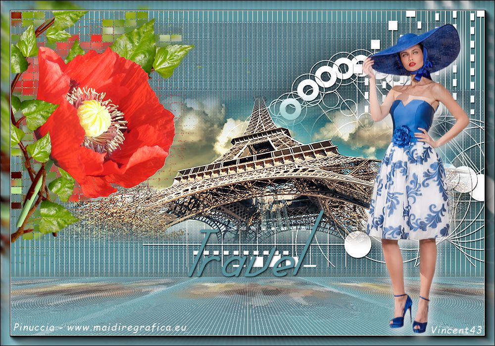 qui puoi trovare qualche risposta ai tuoi dubbi. Se l'argomento che ti interessa non è presente, ti prego di segnalarmelo. Questo tutorial è stato realizzato con Corel19 e tradotto con Corel X, ma può essere realizzato anche con le altre versioni di PSP. Dalla versione X4, il comando Immagine>Rifletti è stato sostituito con Immagine>Capovolgi in orizzontale, e il comando Immagine>Capovolgi con Immagine>Capovolgi in verticale. Nelle versioni X5 e X6, le funzioni sono state migliorate rendendo disponibile il menu Oggetti. Con la nuova versione X7, sono tornati Rifletti>Capovolgi, ma con nuove varianti. Vedi la scheda sull'argomento qui Occorrente: Materiale qui Per il tube della Torre Eiffel grazie Mina. Il resto del materiale è di Erina. Filtri in caso di dubbi, ricorda di consultare la mia sezione filtri qui Mura's Meister - Perspective Tiling qui Carolaine and Sensibility qui AP 01 [Innovations] - Lines SilverLining qui AAA Frames - Foto Frame qui Xero - Improver qui Alien Skin Eye Candy 5 Impact - Perspective Shadow qui ![]() non esitare a cambiare modalità di miscelatura e opacità secondo i colori utilizzati. Metti la selezione nella cartella Selezioni. Metti la maschera nella cartella Maschere. 1. Imposta il colore di primo piano con #5a959f, e il colore di sfondo con #5e6973. ![]() 2. Apri una nuova immagine trasparente 1000 x 700 pixels, e riempila con il colore di primo piano #5a959f.3. Livelli>Nuovo livello raster. Riempi con il colore di sfondo #5e6973.4. Livelli>Carica/Salva maschera>Carica maschera da disco. Cerca e carica la maschera 315-kris-mask ![]() Livelli>Unisci>Unisci gruppo. Effetti>Effetti di bordo>Aumenta di più. 5. Effetti>Effetti di trama>Veneziana, colore #578a9b. ![]() 6. Effetti>Plugins>Carolaine and Sensibility - CS-LDots. ![]() 7. Attiva il livello Raster 1. Effetti>Pluigins>AP 01 [Innovations] - Lines SilverLining. ![]() 8. Attiva il livello superiore Gruppo-Raster 2. Livelli>Nuovo livello raster. Selezione>Carica/Salva selezione>Carica selezione da disco. Cerca e carica la selezione Erina@Travel_Selection. ![]() 9. Apri il tube Mina@.Tour Eiffel e vai a Modifica>Copia. Torna al tuo lavoro e vai a Modifica>Incolla nella selezione. Selezione>Deseleziona. 10. Apri Deco3_erina e vai a Modifica>Copia. Torna al tuo lavoro e vai a Modifica>Incolla come nuovo livello. Spostalo in alto a destra.![]() 11. Effetti>Effetti 3D>Sfalsa ombra, colore nero. ![]() 12. Livelli>Disponi>Sposta giù. ![]() Facoltativo: Attiva il livello del tube della torre: attiva lo strumento Puntatore ![]() e spingi il nodo inferiore verso l'alto per scoprire un po' la decorazione. ![]() 13. Livelli>Unisci>Unisci visibile. 14. Effetti>Plugins>Xero - Improver - Landscape. ![]() 15. Livelli>Duplica. Effetti>Effetti tecniche di disegno>Pennellate. ![]() 16. Effetti>Plugins>AP 01 [Innovations] - Lines SilverLining. ![]() 17. Effetti>Plugins>Mura's Meister - Perspective Tiling. ![]() 18. Effetti>Effetti 3D>Sfalsa ombra, colore #677b76. ![]() 19. Attiva il livello Uniti. Apri il tube Flower e vai a Modifica>Copia. Torna al tuo lavoro e vai a Modifica>Incolla come nuovo livello. Spostalo in alto a sinistra.![]() 20. Effetti>Effetti 3D>Sfalsa ombra, colore #677b76. ![]() 21. Livelli>Duplica. Effetti>Effetti di trama>Mosaico antico. ![]() 22. Immagine>Ridimensiona, al 110%, tutti i livelli non selezionato. ![]() Livelli>Disponi>Sposta giù. ![]() 23. Livelli>Unisci>Unisci visibile. 24. Effetti>Plugins>AAA Frames - Foto Frame. ![]() 25. Attiva lo strumento Testo ![]() scegli un font: per il mio esempio ho usato il font Verticalization colore di sfondo e di primo piano impostati con lo stesso colore pennellata 3 e crenatura 50 ![]() Scrivi Travel (se usi questo font, scrivi la "l" separata e poi unisci i livelli, e, eventualmente, usa i nodi dello strumenti per adattare il testo a tuo piacimento) ![]() Livelli>Converti in livello raster. 26. Effetti>Plugins>Alien Skin Eye Candy 5 Impact - Perspective Shadow. ![]() 27. Apri il tube della donna e vai a Modifica>Copia. Torna al tuo lavoro e vai a Modifica>Incolla come nuovo livello. Spostalo a destra.28. Effetti>Effetti 3D>Sfalsa ombra, con un colore chiaro dell'immagine. ![]() 29. Firma il tuo lavoro. Livelli>Unisci>Unisci tutto e salva in formato jpg. I tubes di questo esempio sono di Logane e Willeke ![]() ![]() Le vostre versioni. Grazie ![]() Maria L. ![]() Vincent ![]() Puoi scrivermi se hai problemi o dubbi, o trovi un link che non funziona, o soltanto per un saluto. 12 Marzo 2017 |