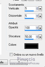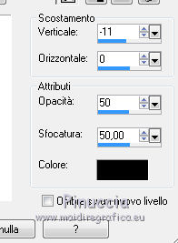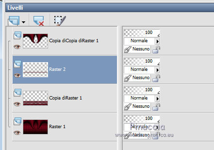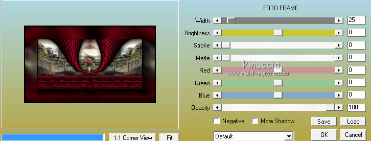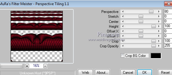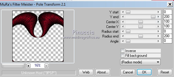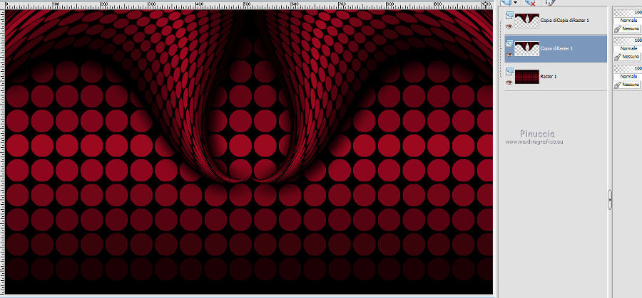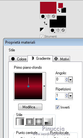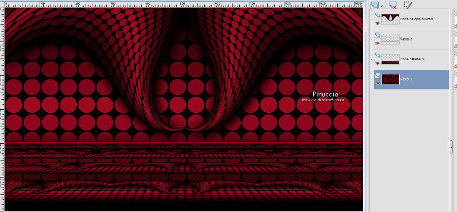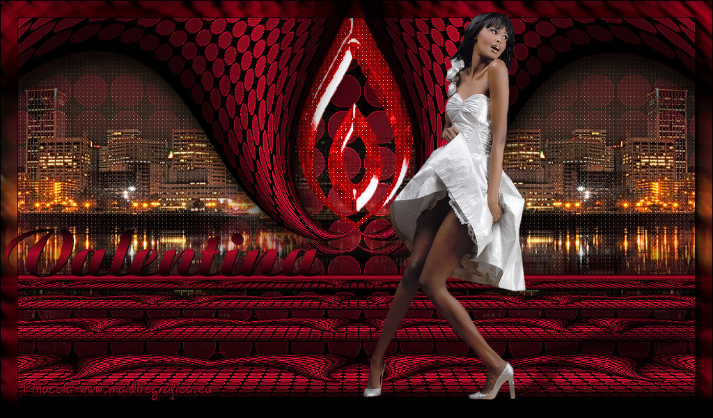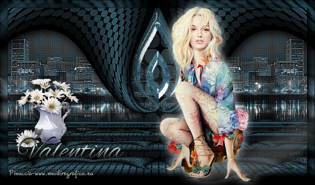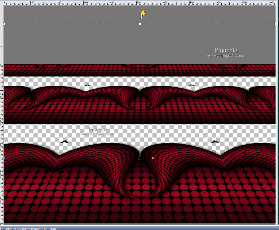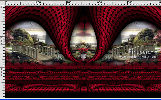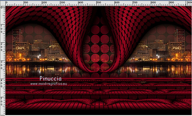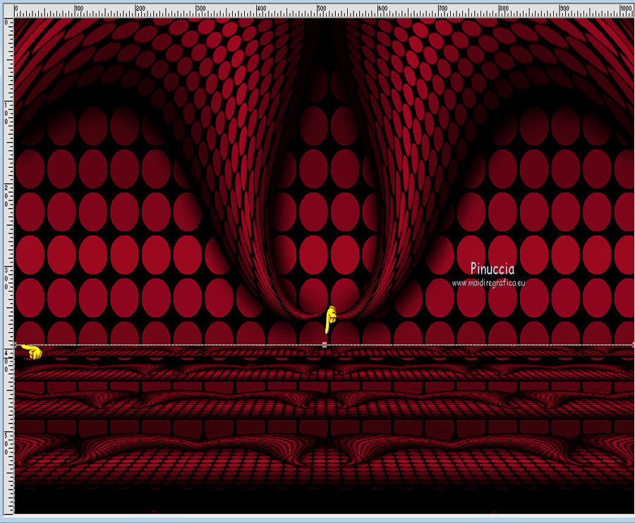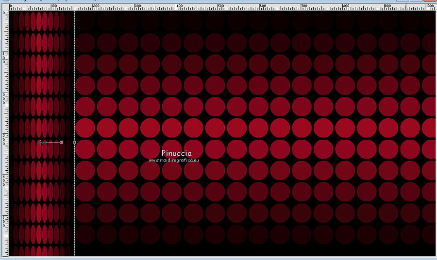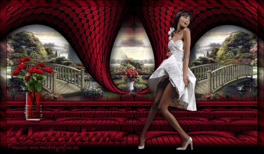 qui puoi trovare qualche risposta ai tuoi dubbi. Se l'argomento che ti interessa non è presente, ti prego di segnalarmelo. Questo tutorial è stato realizzato con Corel18 e tradotto con Corel X, ma può essere realizzato anche con le altre versioni di PSP. Dalla versione X4, il comando Immagine>Rifletti è stato sostituito con Immagine>Capovolgi in orizzontale, e il comando Immagine>Capovolgi con Immagine>Capovolgi in verticale. Nelle versioni X5 e X6, le funzioni sono state migliorate rendendo disponibile il menu Oggetti. Con la nuova versione X7, sono tornati Rifletti>Capovolgi, ma con nuove varianti. Vedi la scheda sull'argomento qui Occorrente: Materiale qui Nel materiale trovi 4 tubes di donna, 4 paesaggio e 3 tubes accessori (vasi). I tubes usati sono di AnaRidzi e Talanat. Filtri in caso di dubbi, ricorda di consultare la mia sezione filtri qui Mura's Meister - Perspective Tiling qui Mura's Meister - Pole Transform qui AAA Frames - Foto Frame qui CPK Designs - CK Pegs qui Carolaine and Sensibility qui AAA Frames - Foto Frame qui ![]() non esitare a cambiare modalità di miscelatura e opacità secondo i colori utilizzati. Nelle ultime versioni di PSP non c'è il gradiente di primo piano/sfondo (Corel_06_029) Puoi usare i gradienti delle versioni precedenti. Trovi qui i gradienti Corel X. Imposta il colore di primo piano con #a20a22, e il colore di sfondo con #000000. Passa il colore di primo piano a Gradiente di primo piano/sfondo, stile Lineare. ![]() 1. Apri una nuova immagine trasparente 1024 x 600 pixels, e riempila con il gradiente.2. Effetti>Plugins>CPK Design - CK Pegs. ![]() 3. Livelli>Duplica. 4. Tasto K per attivare lo strumento Puntatore ![]() se stai usando PSP 9 tasto D per attivare lo strumento Deformazione ![]() in modalità Scala , spingi il nodo superiore centrale verso il basso fino a 200 pixels,e il nodo inferiore centrale verso l'alto fino a 350 pixels. se non visualizzi i Righelli, vai a Visualizza>Righelli ![]() Tasto M o clicca sulla Manina per deselezionare lo strumento.5. Immagine>Ruota per gradi - 90 gradi a sinistra. ![]() 6. Sposta la striscia contro il bordo sinistro![]() 7. Effetti>Effetti geometrici>Cerchio. ![]() 8. Livelli>Duplica. Immagine>Rifletti. Livelli>Unisci>Unisci giù. 9. Effetti>Plugins>Mura's Meister - Pole Transform. ![]() Risultato ![]() Sposta la figura un po' più in basso, come nell'esempio.![]() 10. Effetti>Effetti 3D>Sfalsa ombra, colore nero. ![]() 11. Livelli>Duplica e attiva il livello sottostante Copia di Raster 1. ![]() 12. Livelli>Unisci>Unisci giù. 13. Livelli>Duplica. Effetti>Plugins>Mura's Meister - Perspective Tiling. ![]() 14. Tasto K/D per attivare lo strumento Puntatore /Deformazione ![]() in modalità Scala , spingi il nodo superiore centrale(dovrai uscire dai bordi dell'immagine per trovare il nodo) ![]() verso il basso intorno a 400-410 pixels ![]() 15. Chiudi il livello Raster 1 e attiva il livello Copia di Raster 1. ![]() 16. Attiva lo strumento Penna con i seguenti settaggi![]() e, tenendo premuto il tasto della maiuscola, traccia una linea sopra l'Effetto Perspective ![]() Livelli>Converti in livello raster. 17. Effetti>Effetti 3D>Sfalsa ombra, con i settaggi precedenti. ![]() 18. Riapri e attiva il livello Raster 1. ![]() Effetti>Effetti di bordo>Aumenta. Ripeti l'Effetto sui livelli 2, 3 e 4. 19. Attiva il livello Raster 2. ![]() Livelli>Unisci>Unisci giù. 20. Effetti>Effetti 3D>Sfalsa ombra, colore nero. ![]() 21. Attiva il livello Raster 1. Apri il tube del paesaggio e vai a Modifica>Copia. Torna al tuo lavoro e vai a Modifica>Incolla come nuovo livello. Posiziona il tube a sinistra e usa la funzione Puntatore per adattarlo alla metà dell'immagineLivelli>Duplica. Immagine>Rifletti. Se necessario, allinea / correttamente le due metà.prima versione ![]() seconda versione ![]() 22. Assicurati di essere posizionato sul livello della copia. Livelli>Unisci>Unisci giù. Effetti>Plugins>Carolaine and Sensibility - CS-LDots ![]() 23. Livelli>Unisci>Unisci visibile. Effetti>Plugins>AAA Frames - Foto Frame. ![]() 24. Apri il tube della donna e vai a Modifica>Copia. Torna al tuo lavoro e vai a Modifica>Incolla come nuovo livello. Immagine>Ridimensiona, se e quanto necessario, tutti i livelli non selezionato. Posiziona correttamente il tube.Effetti>Effetti 3D>Sfalsa ombra, settaggi a scelta. 25. Facoltativo: apri decor0 e vai a Modifica>Copia. Torna al tuo lavoro e vai a Modifica>Incolla come nuovo livello. Posiziona il tube in alto al centro.Tasto K/D per attivare lo strumento Puntatore /Deformazione ![]() in modalità Scala , usa i nodi dello strumento per allargare il tube![]() Regola>Tonalità e saturazione>Viraggio, con i valori di tonalità (H) e Saturazione (S) del tuo colore di primo piano. 26. Attiva lo strumento Testo , scegli un font,e, a sinistra, scrivi Valentina. Livelli>Converti in livello raster. Effetti>Effetti 3D>Sfalsa ombra, a scelta. 27. Livelli>Unisci>Unisci visibile. 28. Firma il tuo lavoro e salva in formato jpg. ![]() Il tube di questo esempio è di Odette ![]() ![]() Puoi scrivermi se hai problemi o dubbi, o trovi un link che non funziona, o soltanto per un saluto. 2 Agosto 2016 |