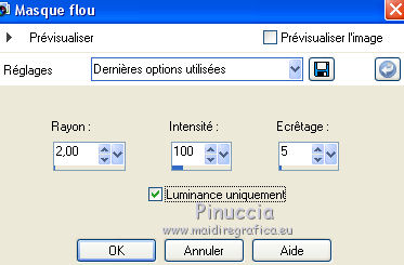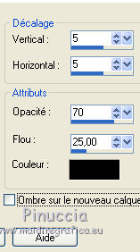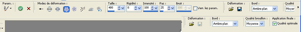 Le tutoriel a été réalisé avec Corel 2018 et traduit avec CorelX2 et CorelX5, mais il peut également être exécuté avec les autres versions. Suivant la version utilisée, vous pouvez obtenir des résultats différents. Depuis la version X4, la fonction Image>Miroir a été remplacée par Image>Renverser horizontalement, et Image>Renverser avec Image>Renverser verticalement. Dans les versions X5 et X6, les fonctions ont été améliorées par la mise à disposition du menu Objets. Avec la nouvelle version X7 nous avons encore Miroir et Renverser, mais avec nouvelles différences. Consulter, si vouz voulez, mes notes ici Certaines dénominations ont changées entre les versions de PSP. Les plus frequentes différences: ![]() traduction italienne ici vos versions ici Nécessaire pour réaliser ce tutoriel: Matériel ici Pour les tubes merci Cady et Mina. Le reste du matériel est de Erina. (dans cette page vous trouvez les liens aux sites des tubers. Modules Externes. consulter, si nécessaire, ma section de filtre ici Filters Unlimited 2.0 ici Mura's Meister - Perspective Tiling ici Mock - Windo ici Simple - Pizza Slice Mirror ici Filtres Mocks et Simple peuvent être utilisés seuls ou importés dans Filters Unlimited. voir comment le faire ici). Si un filtre est fourni avec cette icône, ![]() Si vous voulez utiliser vos propres couleurs, n'hésitez pas à changer le mode et l'opacité des calques Placer le preset Emboss 3 dans le dossier Paramètres par défaut. 1. Ouvrir l'image Background jpg. Cette image sera la base de votre travail. Vous pouvez coloriser l'image, si vous utilisez des autres couleurs. 2. Effets>Effets de bords>Accentuer davantage. Réglage>Netteté>Davantage de netteté. Réglage>Netteté>Masque flou. ![]() Effets>Filtre personnalisé, sélectionner le preset Emboss 3 et ok. ![]() Effets>Modules Externes>Plugins>Simple - Pizza Slice Mirror. 3. Calques>Dupliquer. Image>Miroir. Réduire l'opacité de ce calque à 50%. Calques>Fusionner>Fusionner le calque de dessous. ![]() 4. Calques>Dupliquer. Image>Redimensionner, à 75%, redimensionner tous les calques décoché. ![]() 5. Placer en arrière plan la couleur blanche. > ![]() Effets>Modules Externes>Mock - Windo ![]() 6. Calques>Dupliquer. Effets>Modules Externes>Mura's Meister - Perspective Tiling. ![]() Effets>Effets 3D>Ombre portée. ![]() 7. Vous positionner sur le calque de dessous Copie de Arrière plan. ![]() 8. Image>Redimensionner, à 85%, redimensionner tous les calques décoché. ![]() 9. Activer l'outil Pinceau déformant ![]() avec ces paramètres ![]() Placer la souris à peu près comme ci-dessous ![]() Tenir enfoncé la touche de la souris sans la déplacer, jusqu'à obtenir une figure comme ci-dessous. ![]() 10. Image>Redimensionner, à 85%, redimensionner tous les calques décoché. Calques>Agencer>Déplacer vers le haut. Déplacer le cadre un peu plus en haut.![]() Effets>Effets 3D>Ombre portée, couleur noire. ![]() 11. Ouvrir Erina_Zulema_skew png - Édition>Copier. Revenir sur votre travail et Édition>Coller comme nouveau calque. Déplacer le tube dans le cadre et l'adapter avec l'outil Sélecteur ![]() ![]() 12. Ouvrir le tube Erina_Zulema_gombok - Édition>Copier. Revenir sur votre travail et Édition>Coller comme nouveau calque. Déplacer le tube dans le cadre et l'adapter avec l'outil Sélecteur ![]() ![]() 13. Ouvrir le cadre Zulema_rounded square png_keretet - Édition>Copier. Revenir sur votre travail et Édition>Coller comme nouveau calque. Positioner le cadre comme ci-dessous.![]() Effets>Effets 3D>Ombre portée, couleur noire. ![]() 14. Ouvrir Zulema_wave_png. - Édition>Copier. Revenir sur votre travail et Édition>Coller comme nouveau calque. Déplacer le tube dans le cadre et l'adapter avec l'outil Sélecteur ![]() ![]() Effets>Effets 3D>Ombre portée, couleur noire. ![]() 15. Copier/coller comme nouveau calque les deux textes et positionner un texte à droite et l'autre texte à gauche.![]() 16. Ouvrir le tube du vase de Mina - Édition>Copier. Revenir sur votre travail et Édition>Coller comme nouveau calque. Déplacer le tube en bas à gauche.![]() Effets>Effets 3D>Ombre portée, comme précédemment. ![]() 17. Ouvrir le tube de la femme - Édition>Copier. Revenir sur votre travail et Édition>Coller comme nouveau calque. Image>Redimensionner, à 130%, redimensionner tous les calques décoché. Image>Miroir. Déplacer le tube à droite.Effets>Effets 3D>Ombre portée, couleur noire. ![]() 18. Signer votre travail sur un nouveau calque. petite note sur le watermark: je ne demande pas de mettre le watermark sur les versions faites après mes traductions. Mais, si vous décidez d'utiliser le watermark fourni par l'auteur, j'apprécierais que mon travail de traducteur soit également respecté. Pour cela, j'ai ajouté au matériel mon watermark. ![]() 19. Image>Redimensionner, à 950 pixels de largeur, redimensionner tous les calques coché. Enregistrer en jpg. Les tubes de cette version sont de Rooske et Mina ![]() ![]() Vous pouvez m'écrire pour n'importe quel problème, ou doute, ou si vous trouvez un link modifié, ou seulement pour me dire que ce tutoriel vous a plu. 2 Juin 2018 |