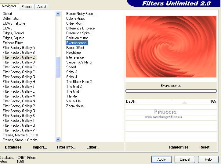 5. Effets>Modules Externes>Filters Unlimited 2.0 - Filter Factory Gallery C - Evanescence, par défaut.