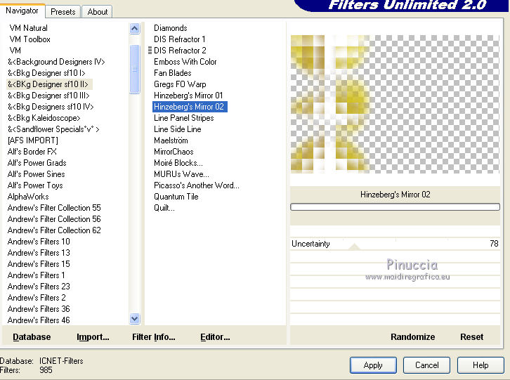 17. Effets>Modules Externes>Filters Unlimited 2.0 - &<Bkg Designers sf10II> - Hinzeberg's Mirror 02