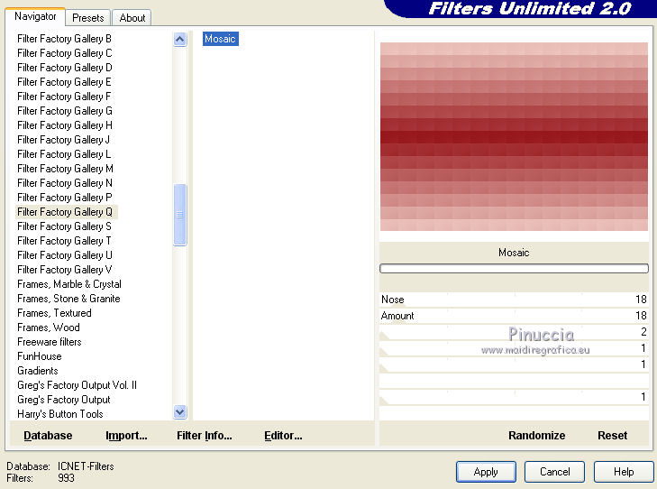 3. Effets>Modules Externes>Filter Factory Gallery Q - Mosaic, par défaut.