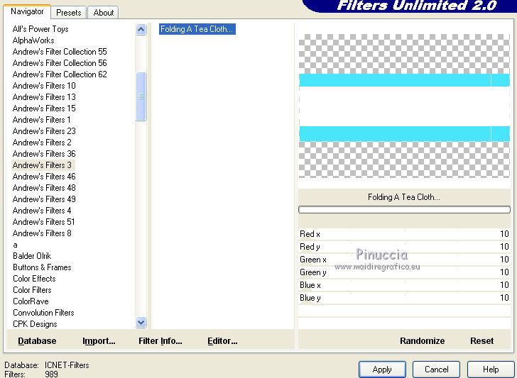 13. Effets>Modules Externes>Filters Unlimited 2.0 - Andrews Filters 3 - Folding A Tea Cloth