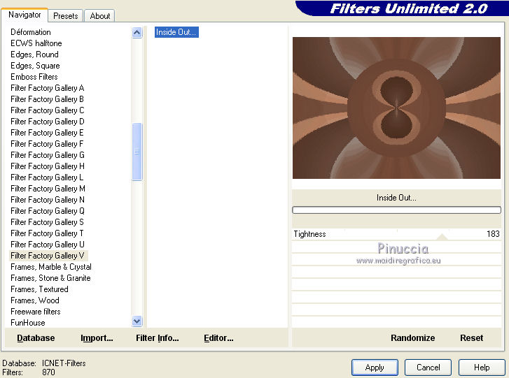 8. Effets>Modules Externes>Filters Unlimited 2.0 - Filter Factory Gallery V - Inside Out...