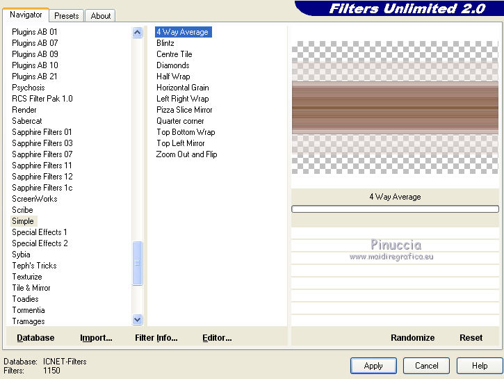 31. Effets>Modules Externes>Filters Unlimited 2.0 - Simple - 4 Way Average.