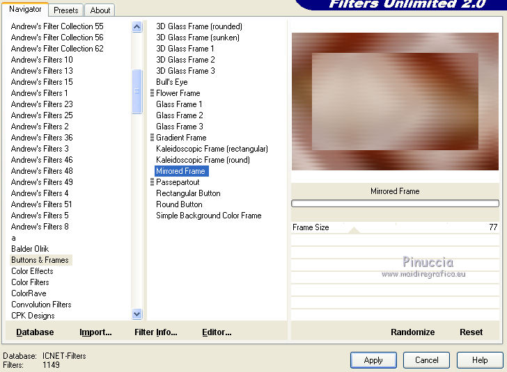 20. Effets>Modules Externes>Filters Unlimited 2.0 - Buttons &Frames - Mirrored Frame.