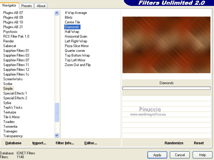 5. Effets>Modules Externes>Filters Unlimited 2.0 - Simple - Diamonds.