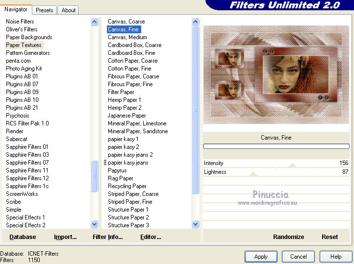 37. Effets>Modules Externes>Filters Unlimited 2.0 - Paper Textures - Canvas Fine, par défaut.