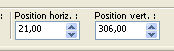 Garder Position horiz.: 21,00 et placer Position vert.; 306,00.