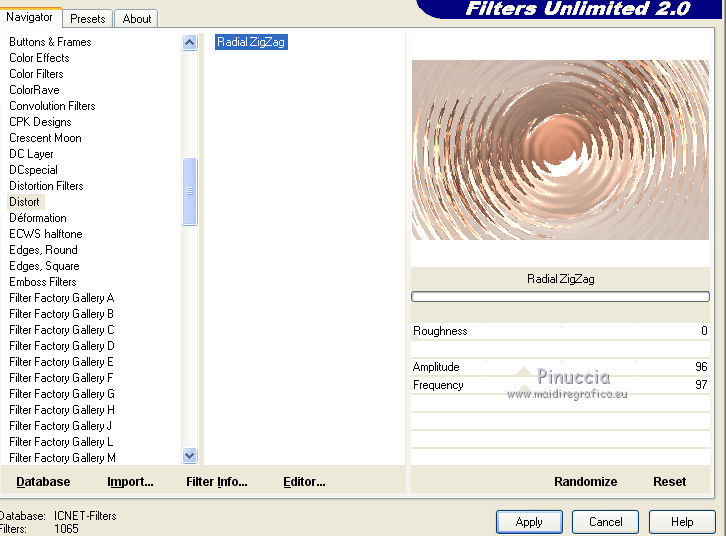 19. Effets>Modules Externes>Filters Unlimited 2.0 - Distort - Radial ZigZag, par défaut