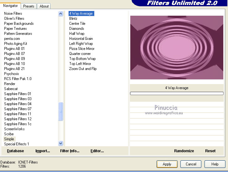 5. Effets>Modules Externes>Filters Unlimited 2.0 - Simple - 4Way Average