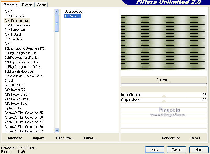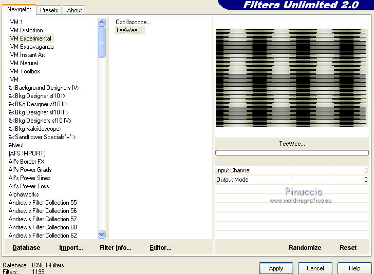 Effets>Modules Externes>Filters Unlimited 2.0 - VM Experimental - TeeWee, par défaut.