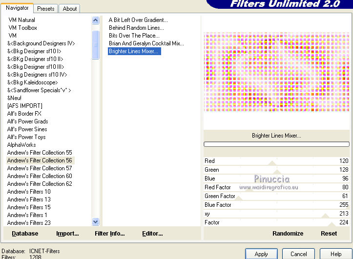 Effets>Modules Externes>Filters Unlimited 2.0 - Andrew's Filter Collection 56 - Brighter Lines Mixer.