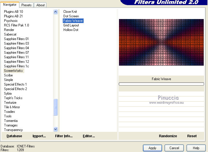 14. Effets>Modules Externes>Filters Unlimited 2.0 - Screenworks - Fabric Weave.