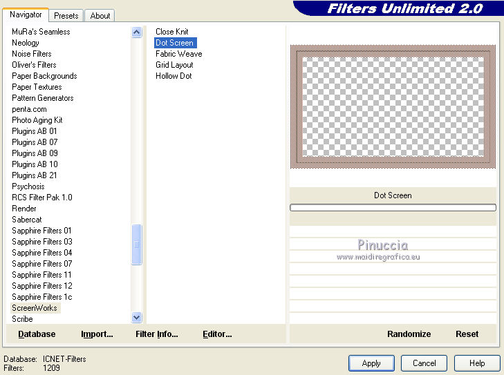 21. Effets>Modules Externes>Filters Unlimited 2.0 - Screenworks - Dot Screen.