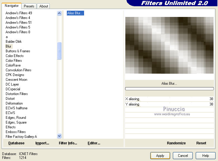 Effets>Modules Externes>Filters Unlimited 2.0 - Blur - Alias Blur.