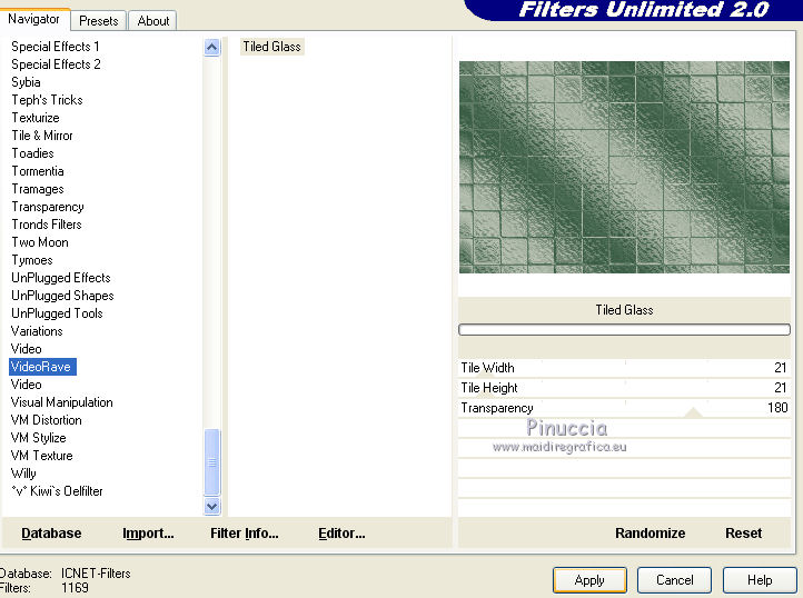 Effets>Modules Externes>Filters Unlimited 2.0 - VideoRave - Tiled Glass.