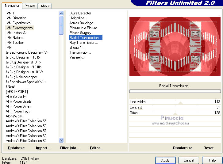 18. Effets>Modules Externes>Filters Unlimited 2.0 - VM Extravaganza - Radial Transmission, comme précédemment