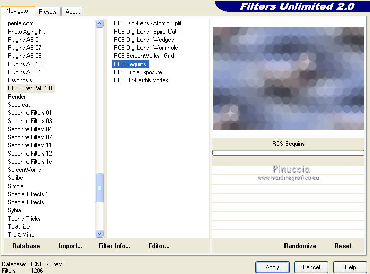 6. Effets>Modules Externes>Filters Unlimited 2.0 - RCS Filter Pak - RCS Sequins.