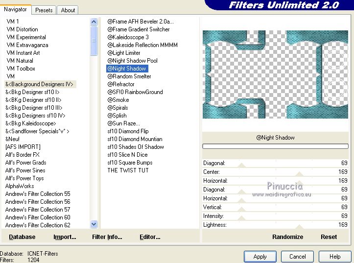 25. Effets>Modules Externes>Filter Unlimited 2.0 - &<Background Designers IV> - @Night Shadow.