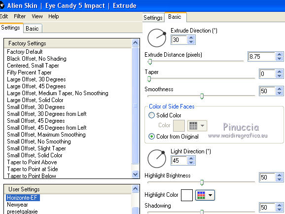 23. Effets>Modules Externes>Alien Skin Eye Candy 5 Impact - Extrude