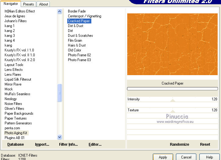 4. Effets>Modules Externes>Filters Unlimited 2.0 - Photo Aging Kit - Cracked Paper.