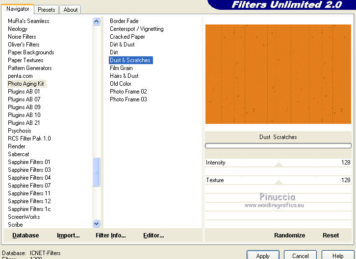 3. Effets>Modules Externes>Filters Unlimited 2.0 - Photo Aging Kit - Dust_Scratches.