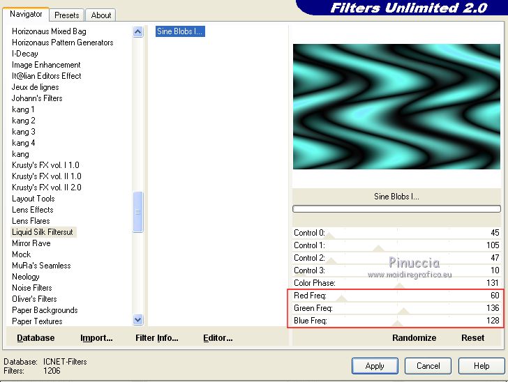 Effets>Modules Externes>Filters Unlimited 2.0 - Liquid Silk Filtersut - Sine Blobs 1.