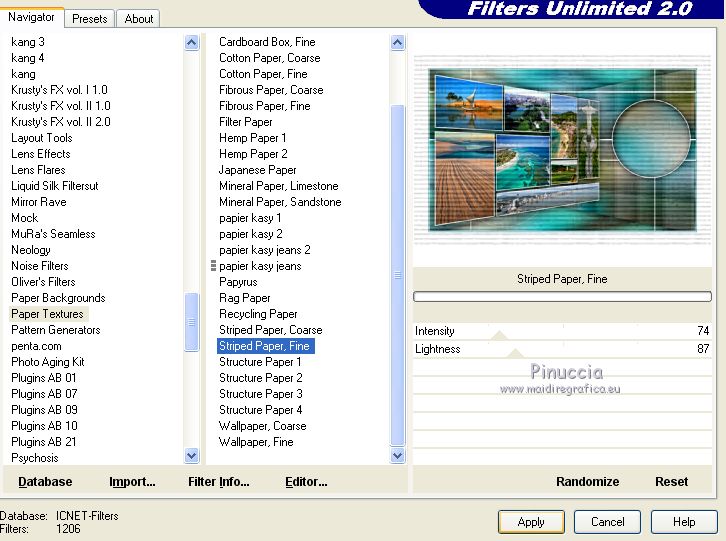Effets>Modules Externes>Filters Unlimited 2.0 - Paper Texture - Striped paper fine, par défaut.