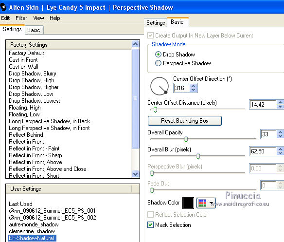 21. Effets>Modules Externes>Alien Skin Eye Candy 5 Impact - Perspective Shadow.