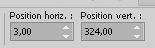 Placer Position horiz.: 3,00 et Position vert.: 324,00.