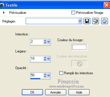 5. Effets>Effets de textures>Textile - couleur du tissage #ffffff.